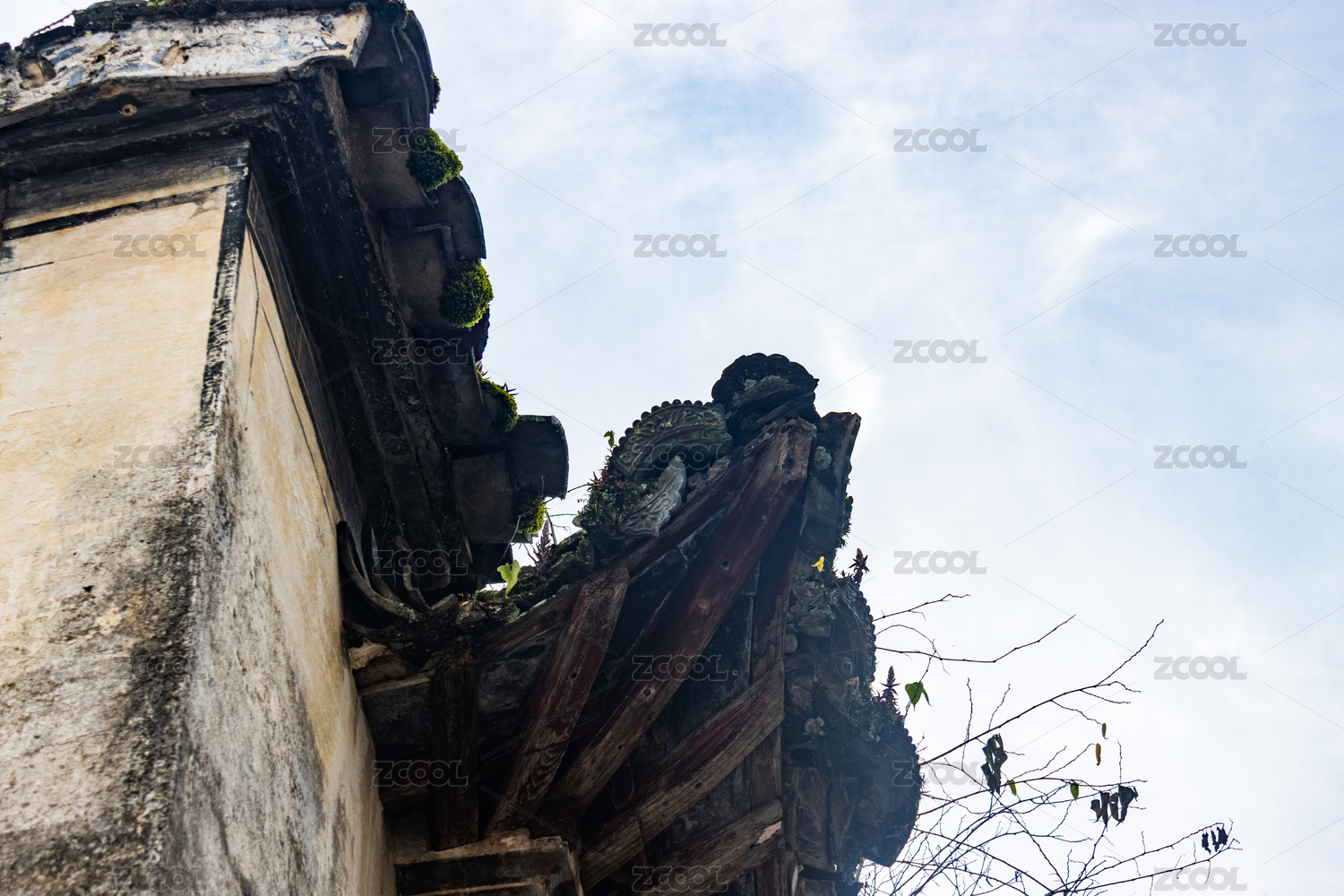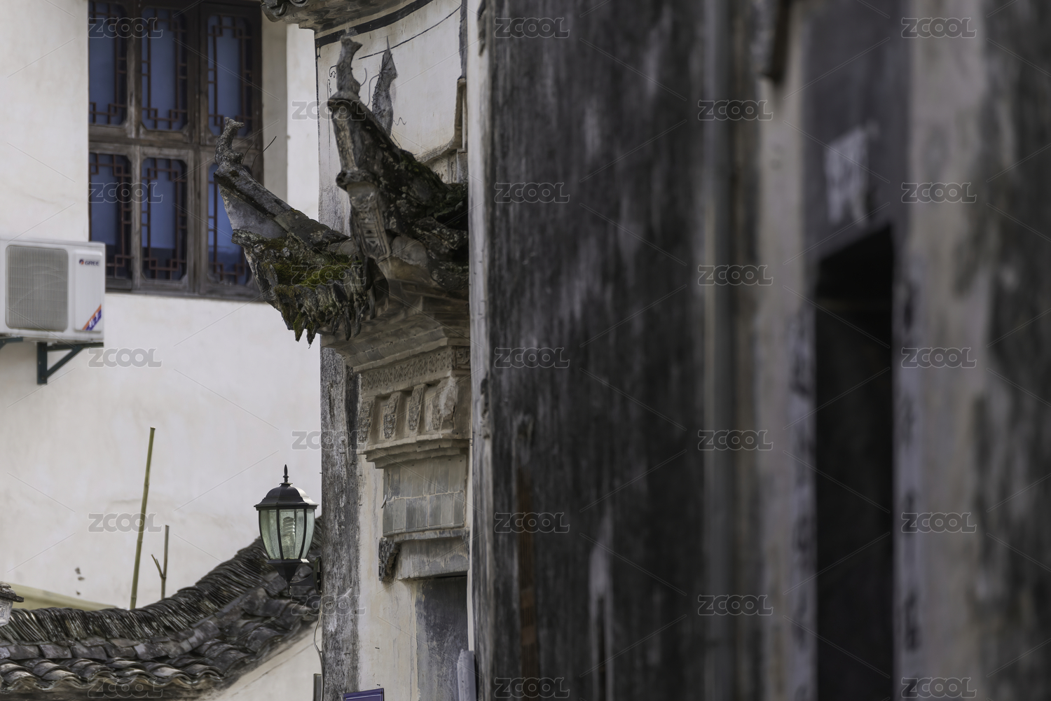 安徽省黄山市黟县西递古村风光徽派建筑结构