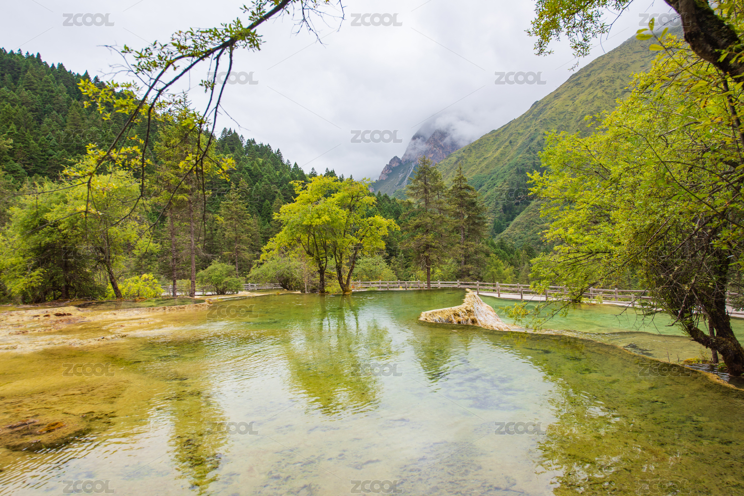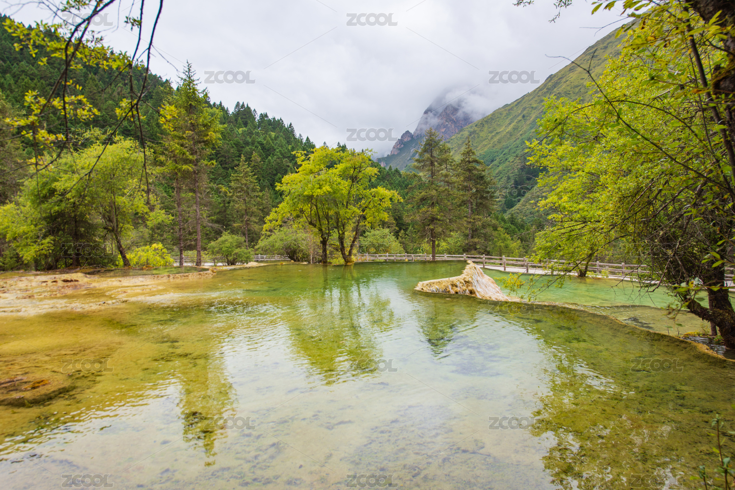 四川黄龙瑶池与云杉丛林