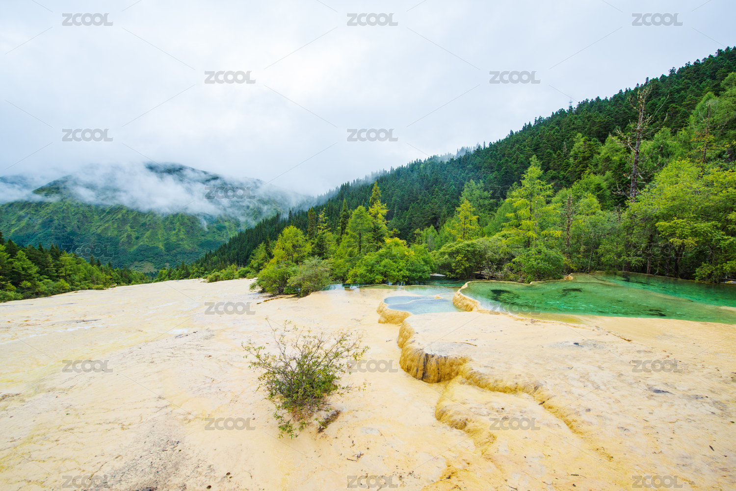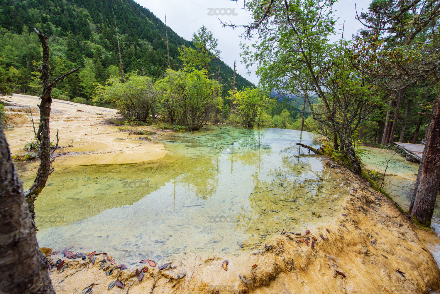 四川黄龙彩池与云杉