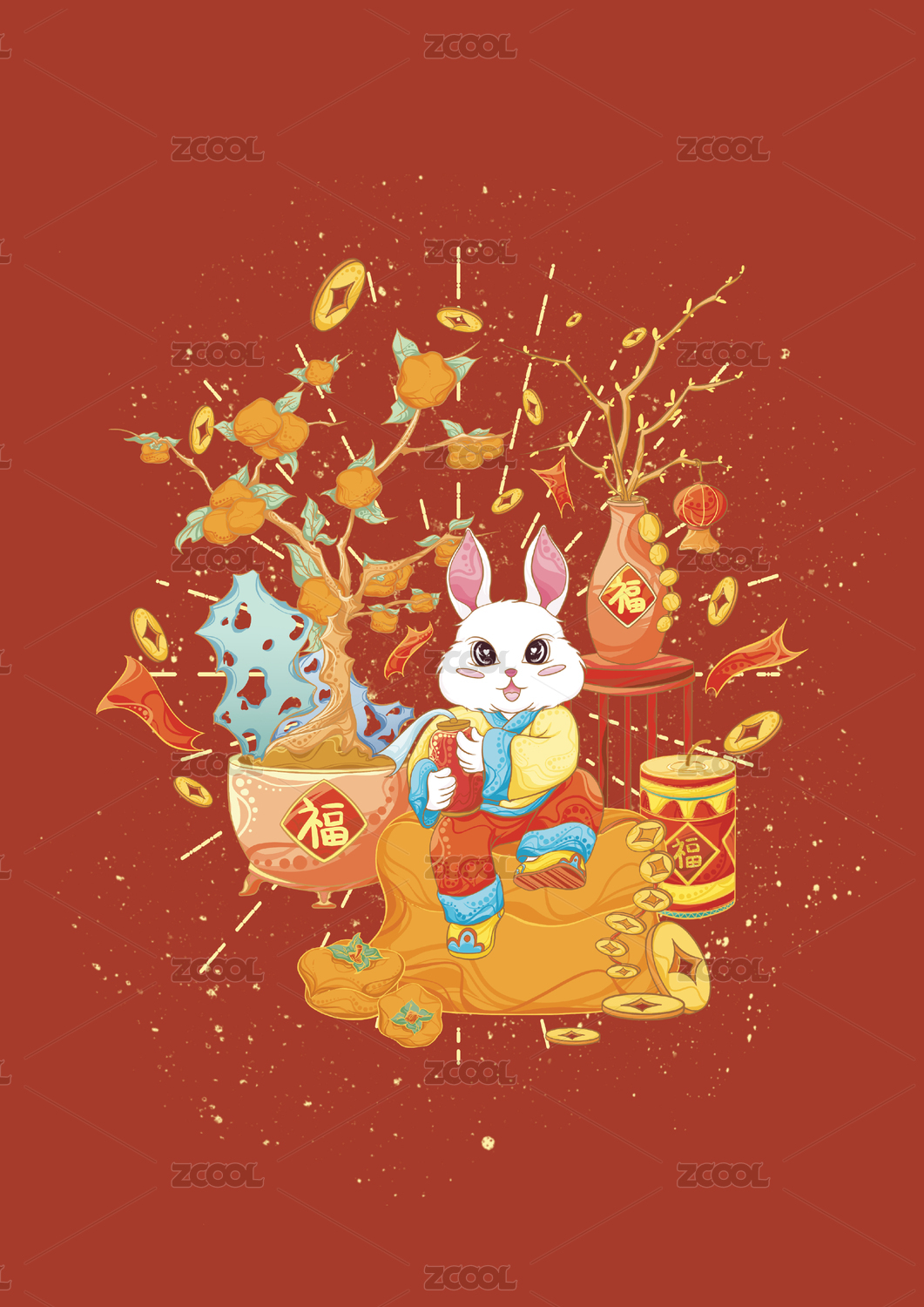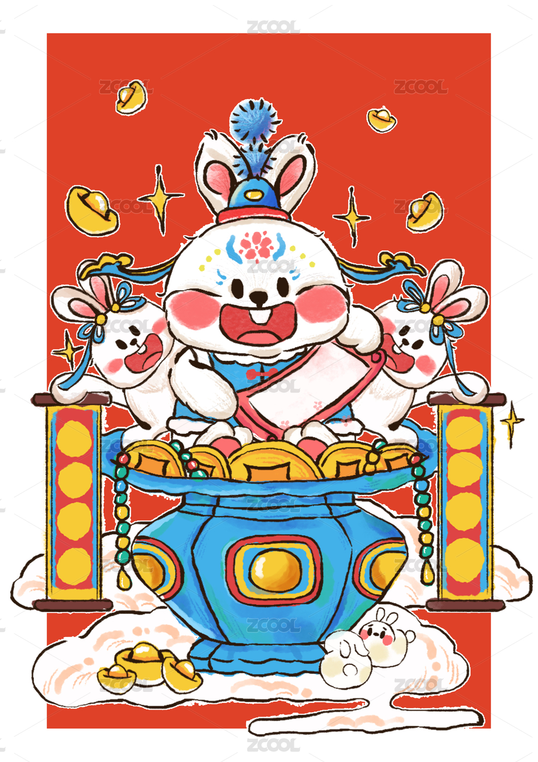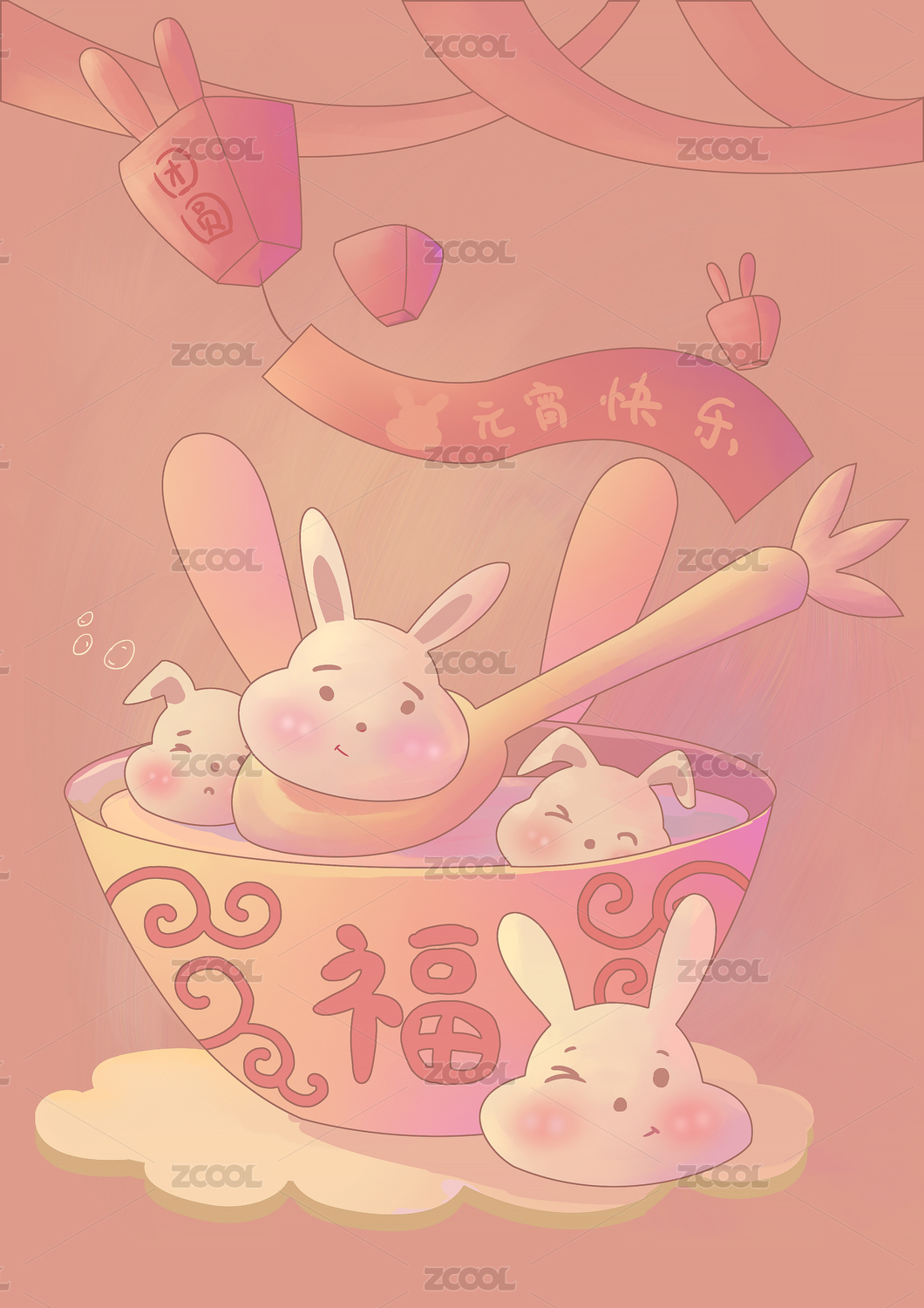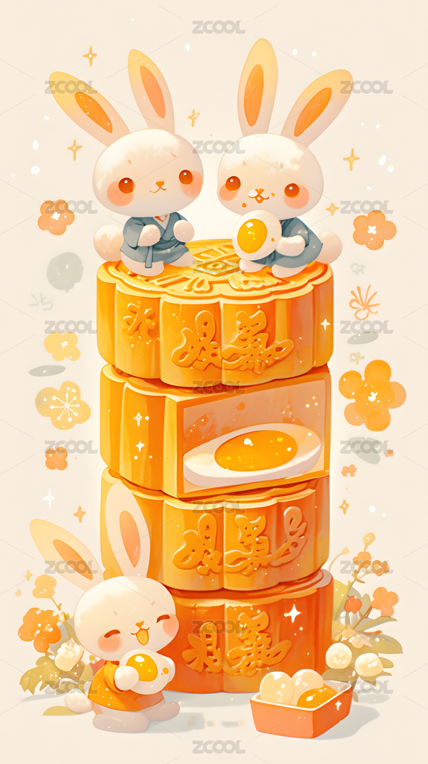 糖果色卡通兔子甜品蛋糕场景插画海报