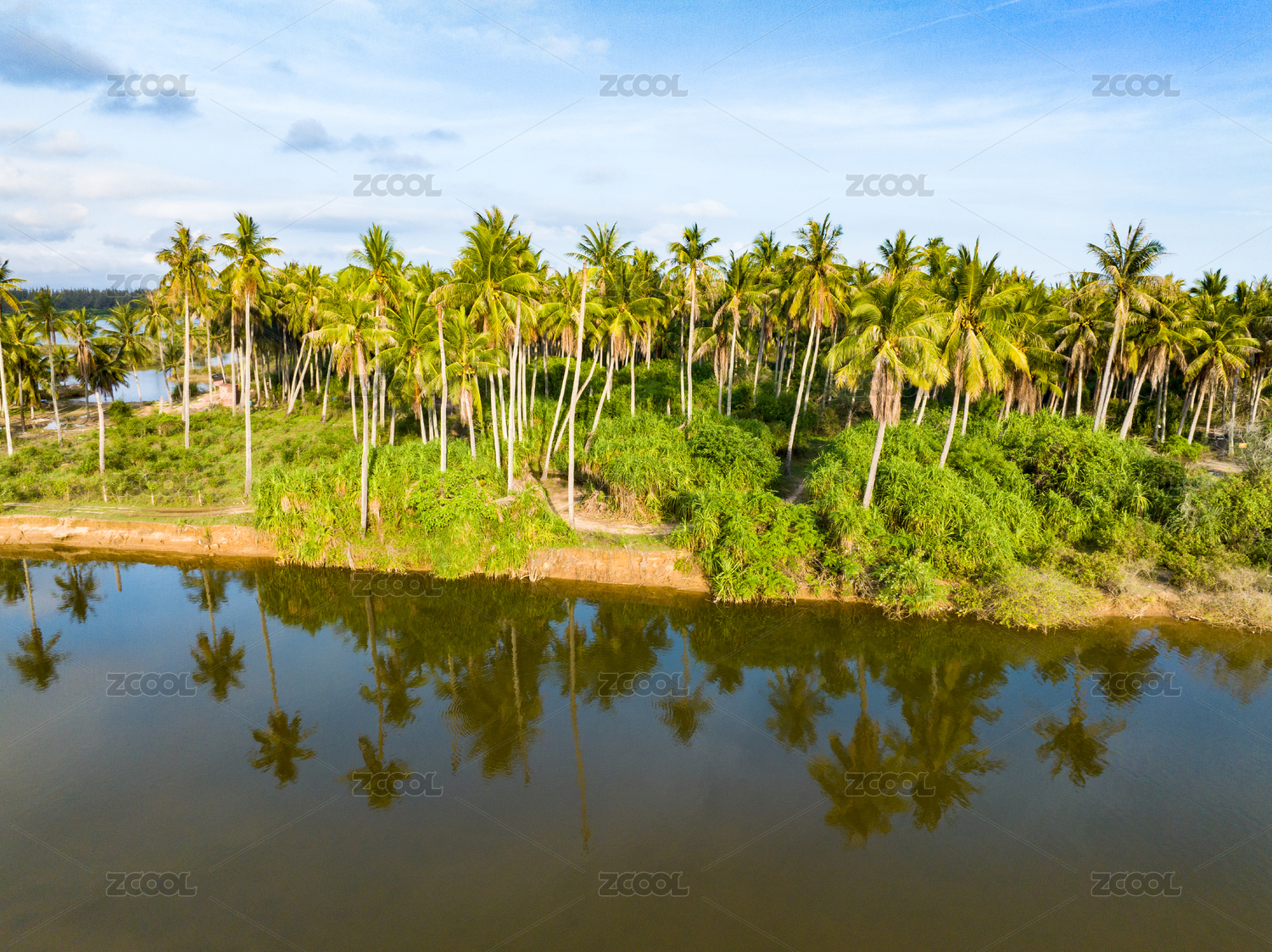 海南,三亚,椰子洲岛,椰子树,椰树,海边,河流,椰林,夕阳,阳光