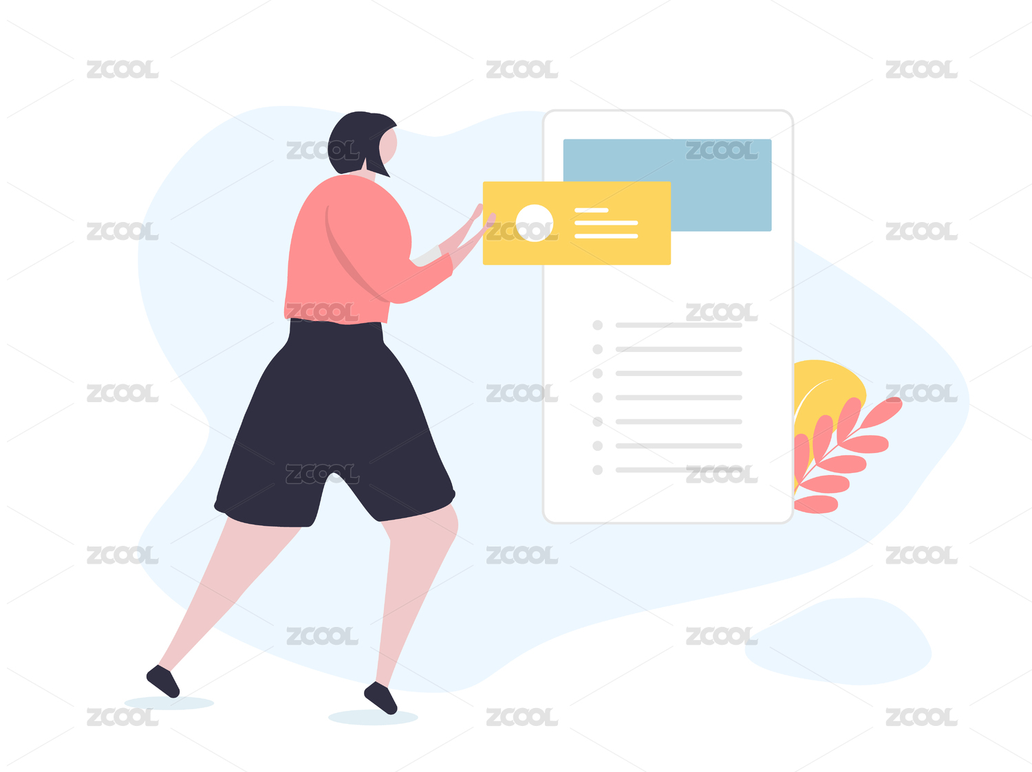 问卷投票的女孩, 矢量扁平人物场景创意概念插画