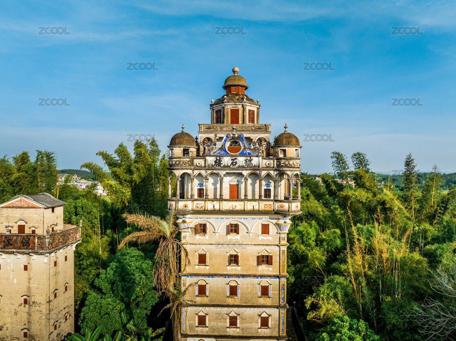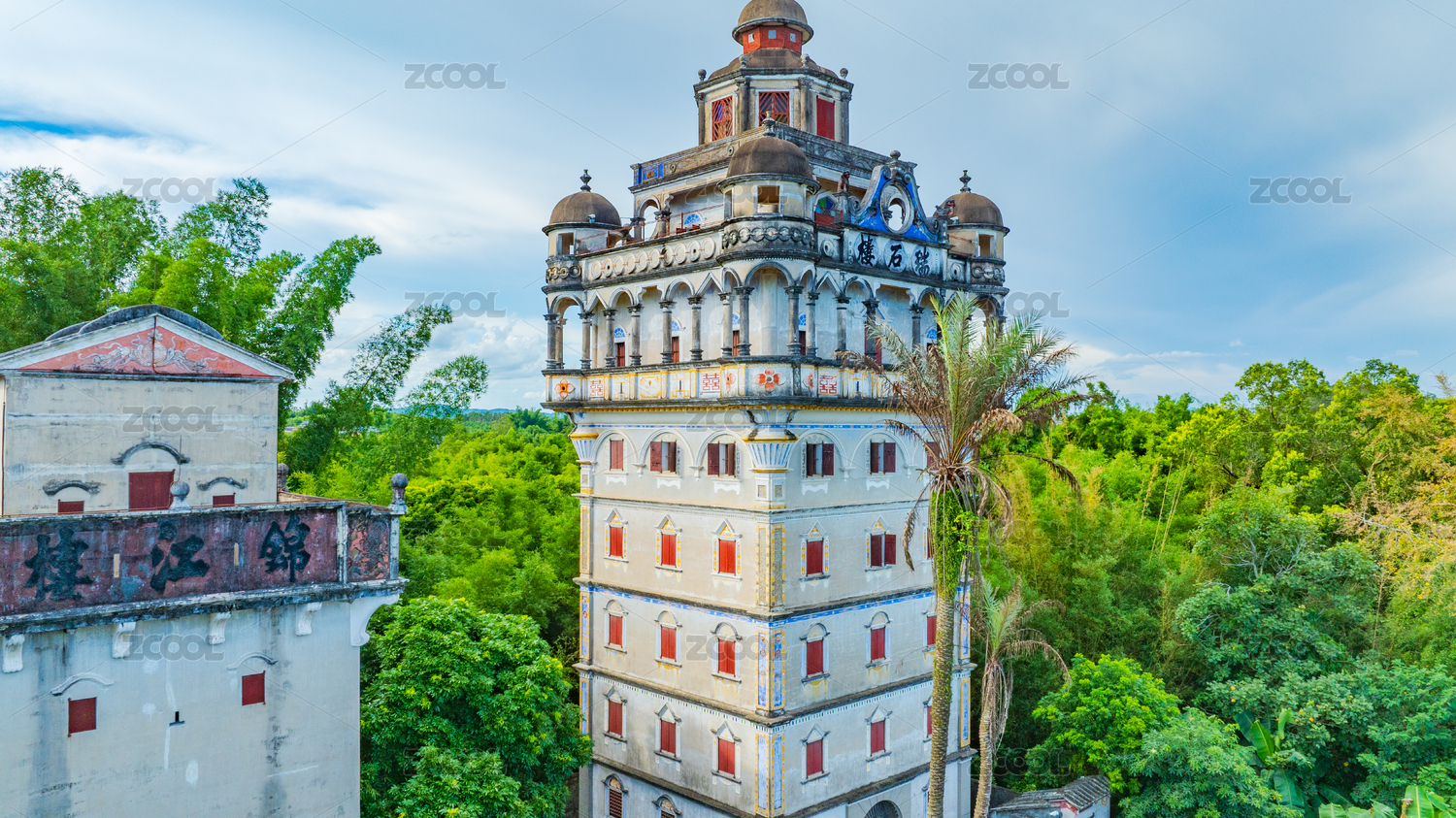 世界文化遗产广东开平锦江里瑞石楼稻田碉楼