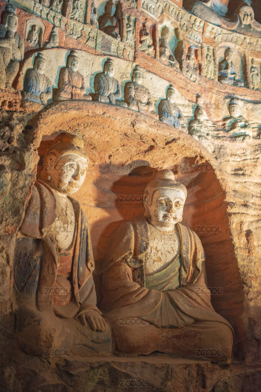 中国山西省大同市西郊武周山云冈石窟精美佛教造像