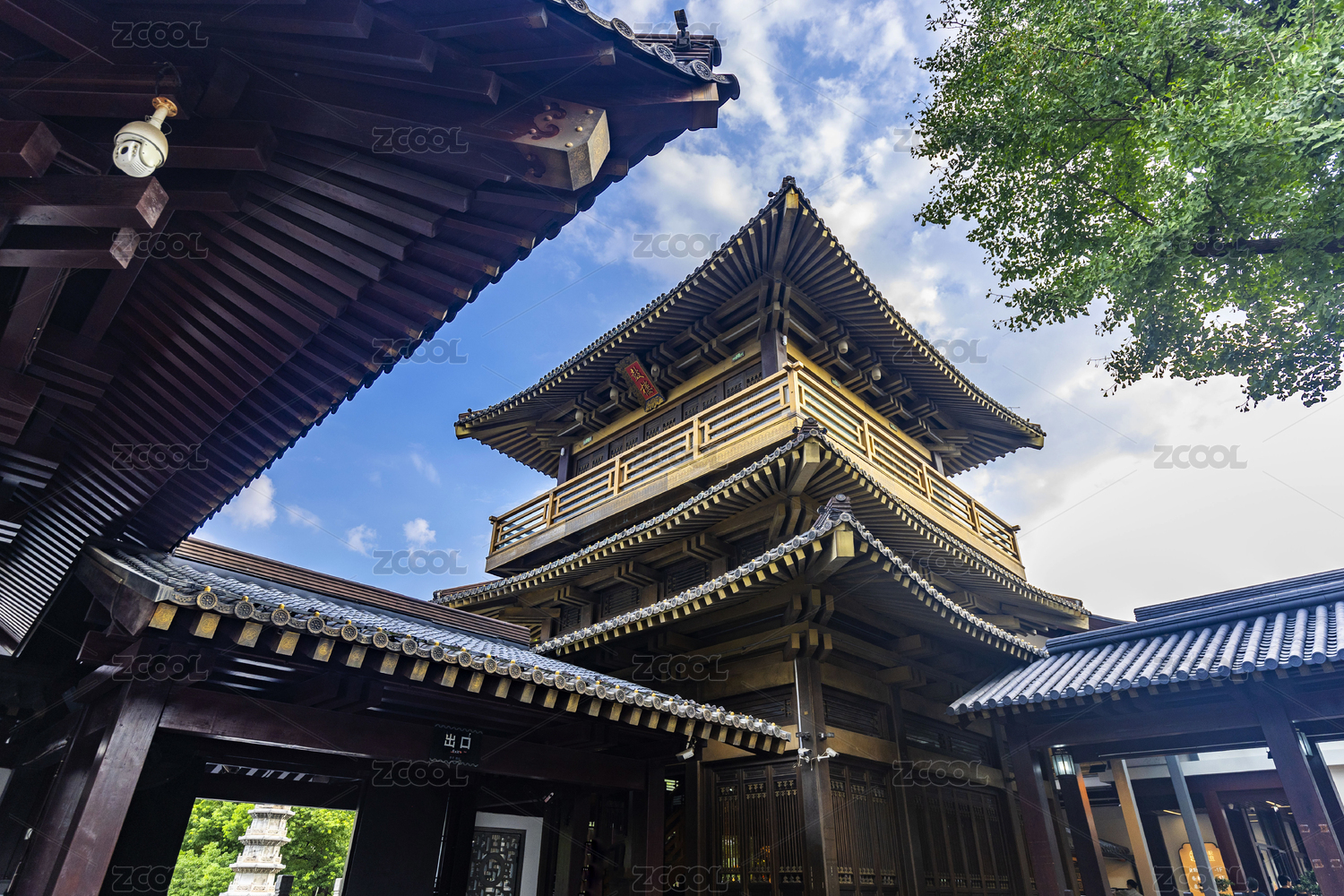 上海市宝山寺-中式园林中的古典建筑