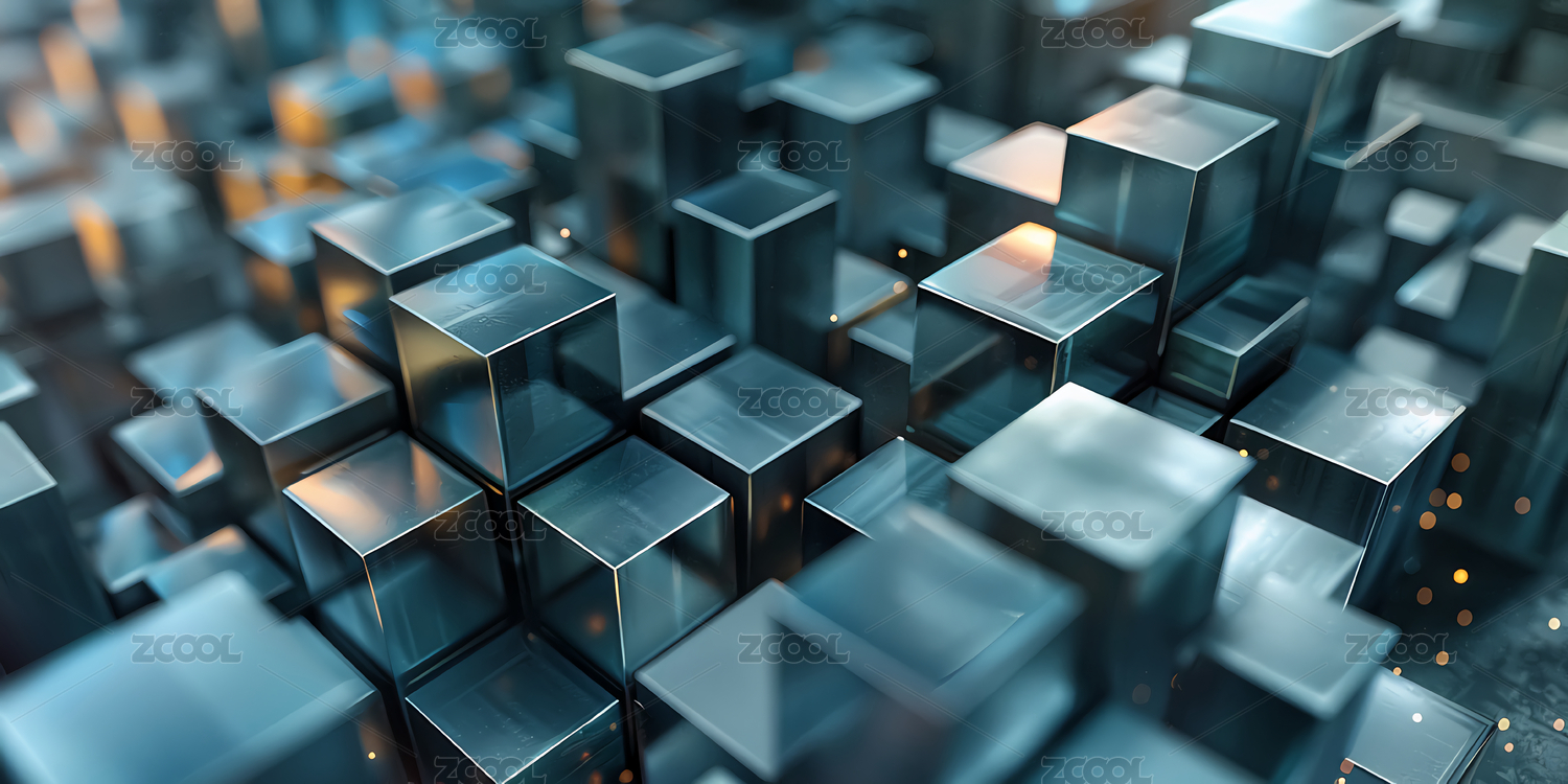 抽象金属质感几何立方体商务科技主题背景