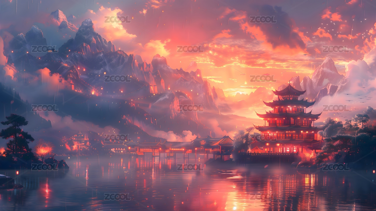 中国风,国潮风,古代,建筑,风景,山水,插
