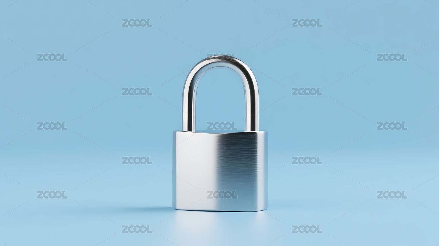 银色挂锁映衬浅蓝背景