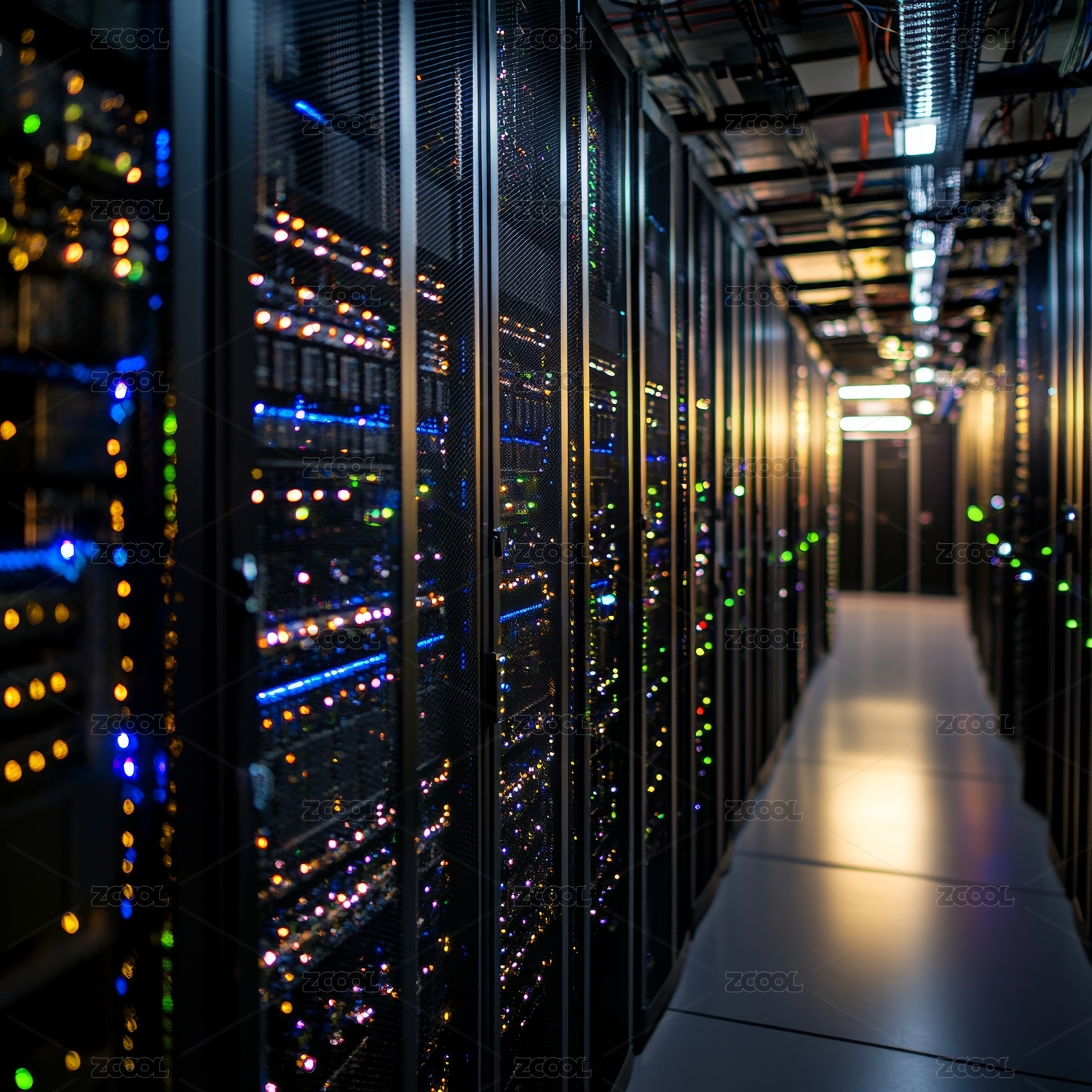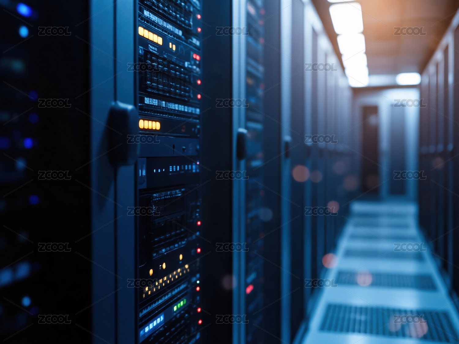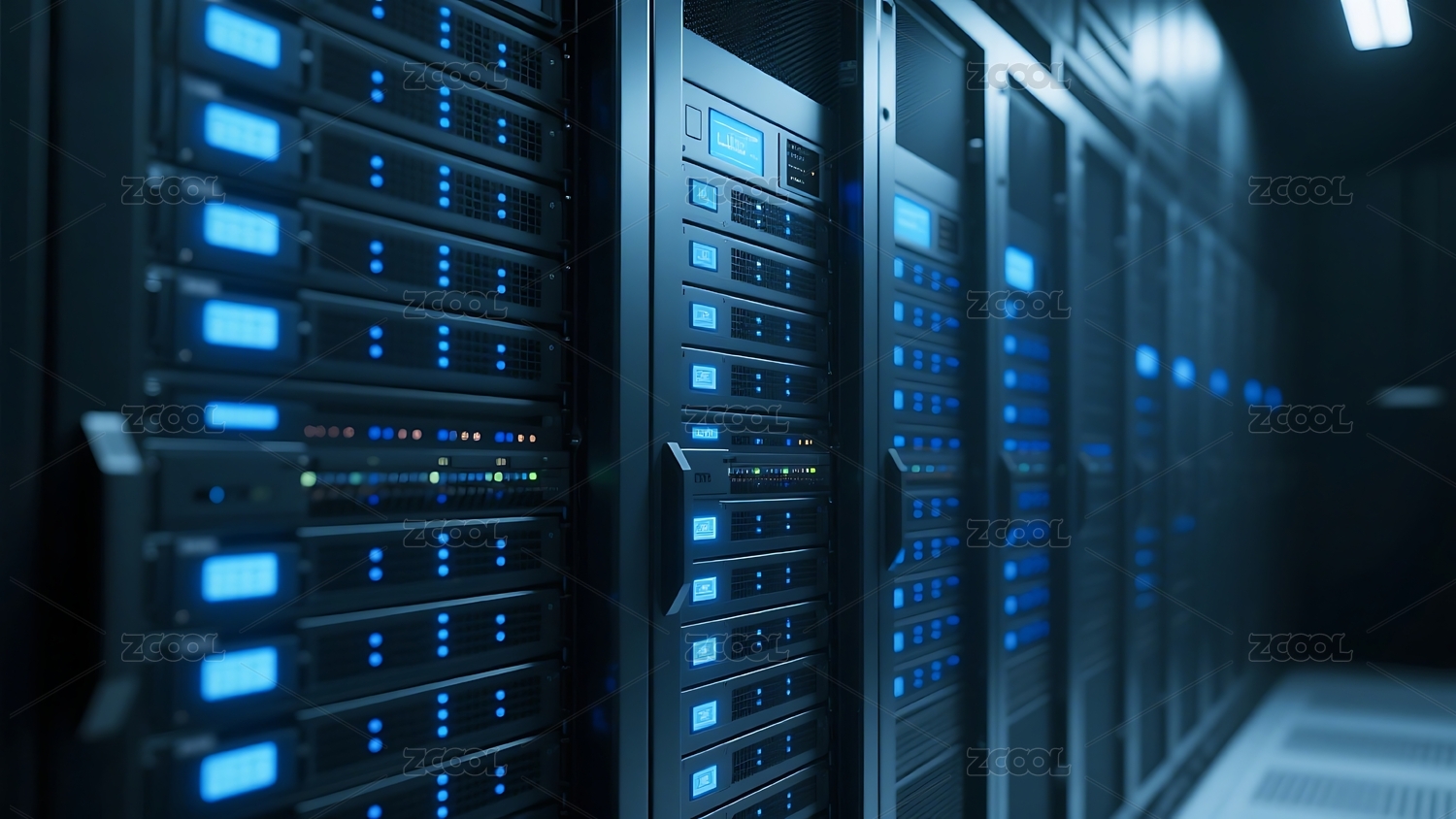 三维渲染的现代化高科技的服务器机房,强大的数据库和运算存储能力。