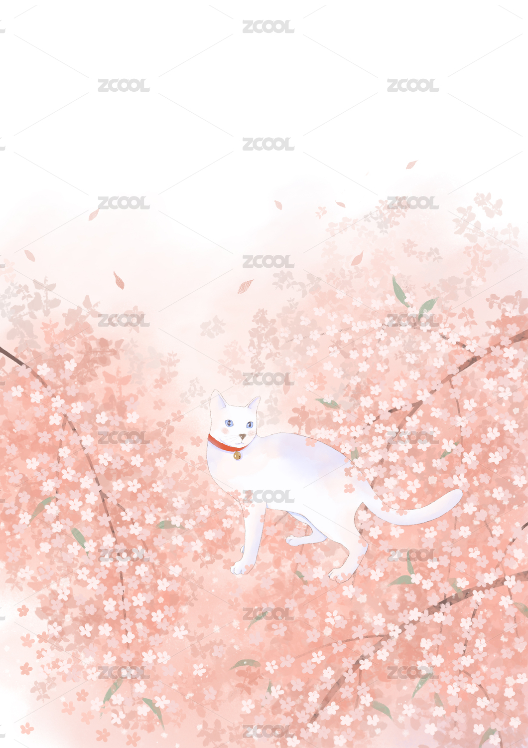 萌猫绿叶间嬉戏水彩风唯美