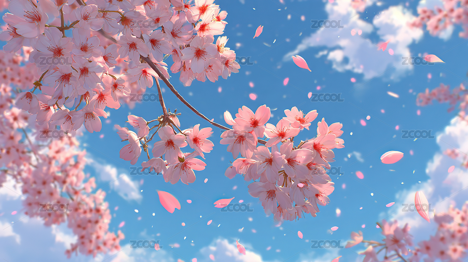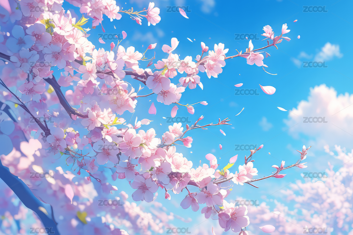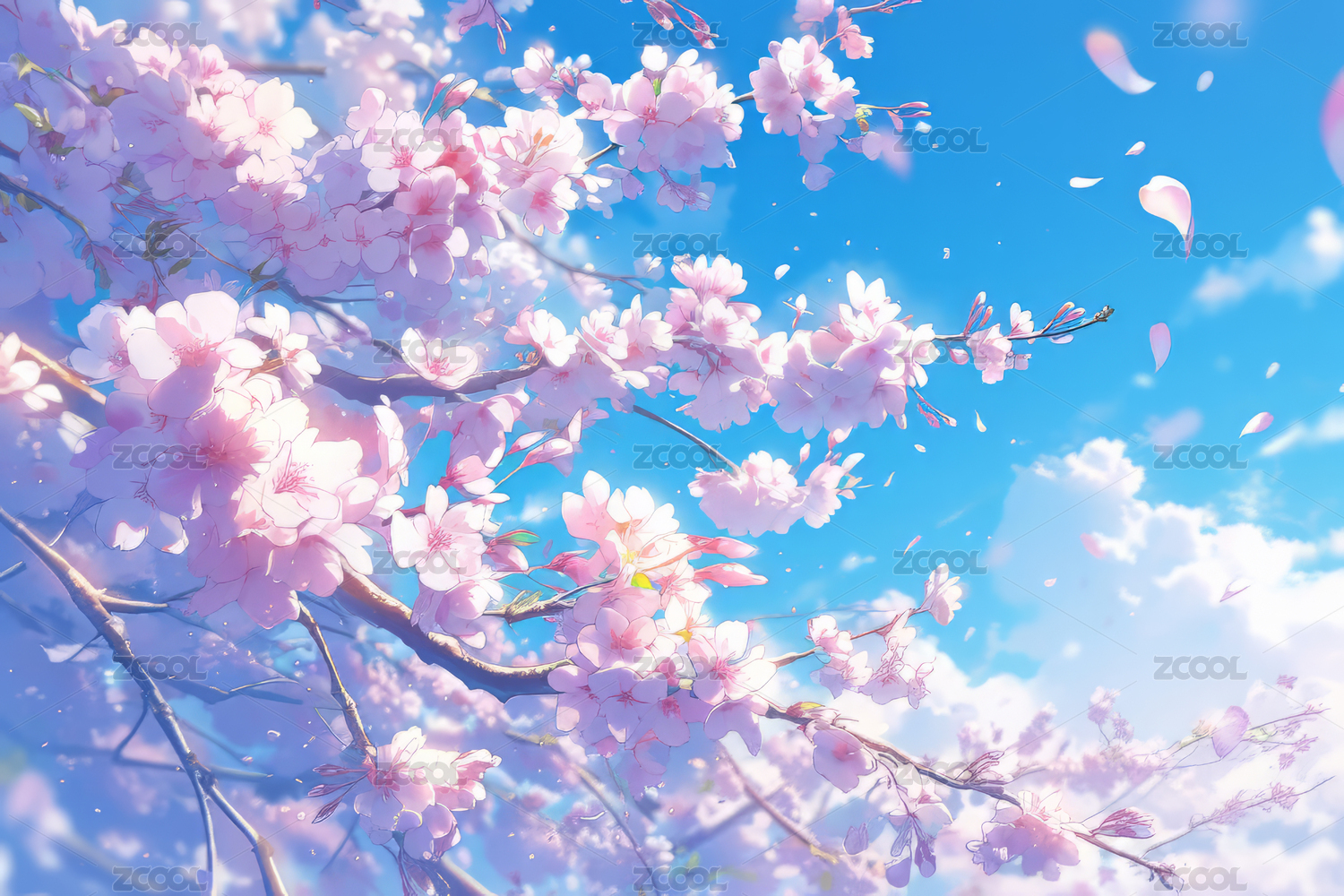 日漫,樱花,樱花树,花,鲜花,花朵,花瓣,卡通,插画