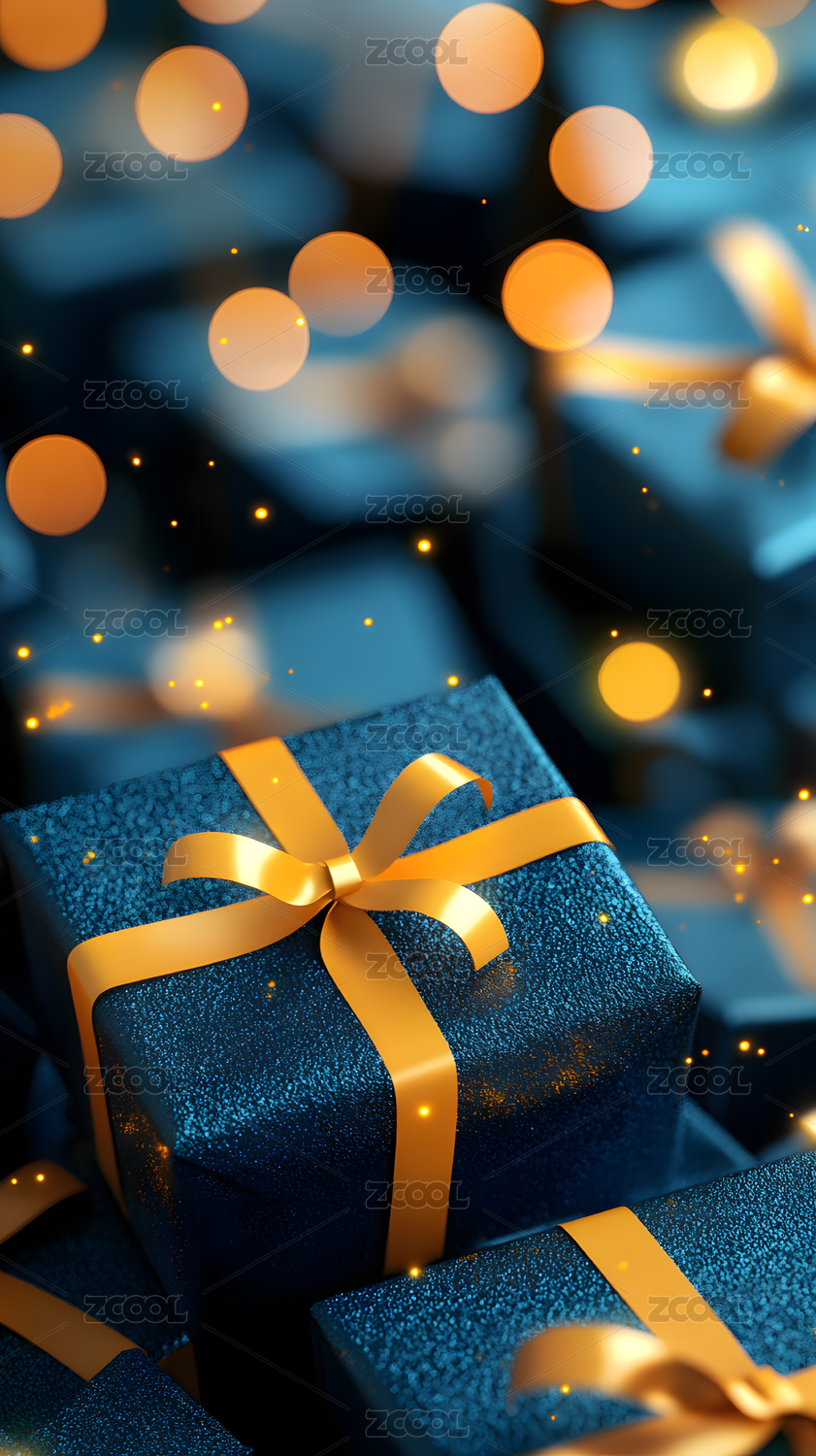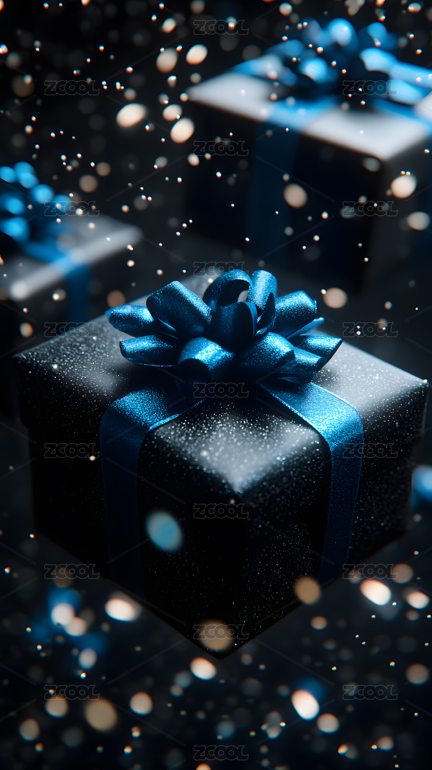 黑色礼盒与金色丝带,奢华闪耀的节日气氛