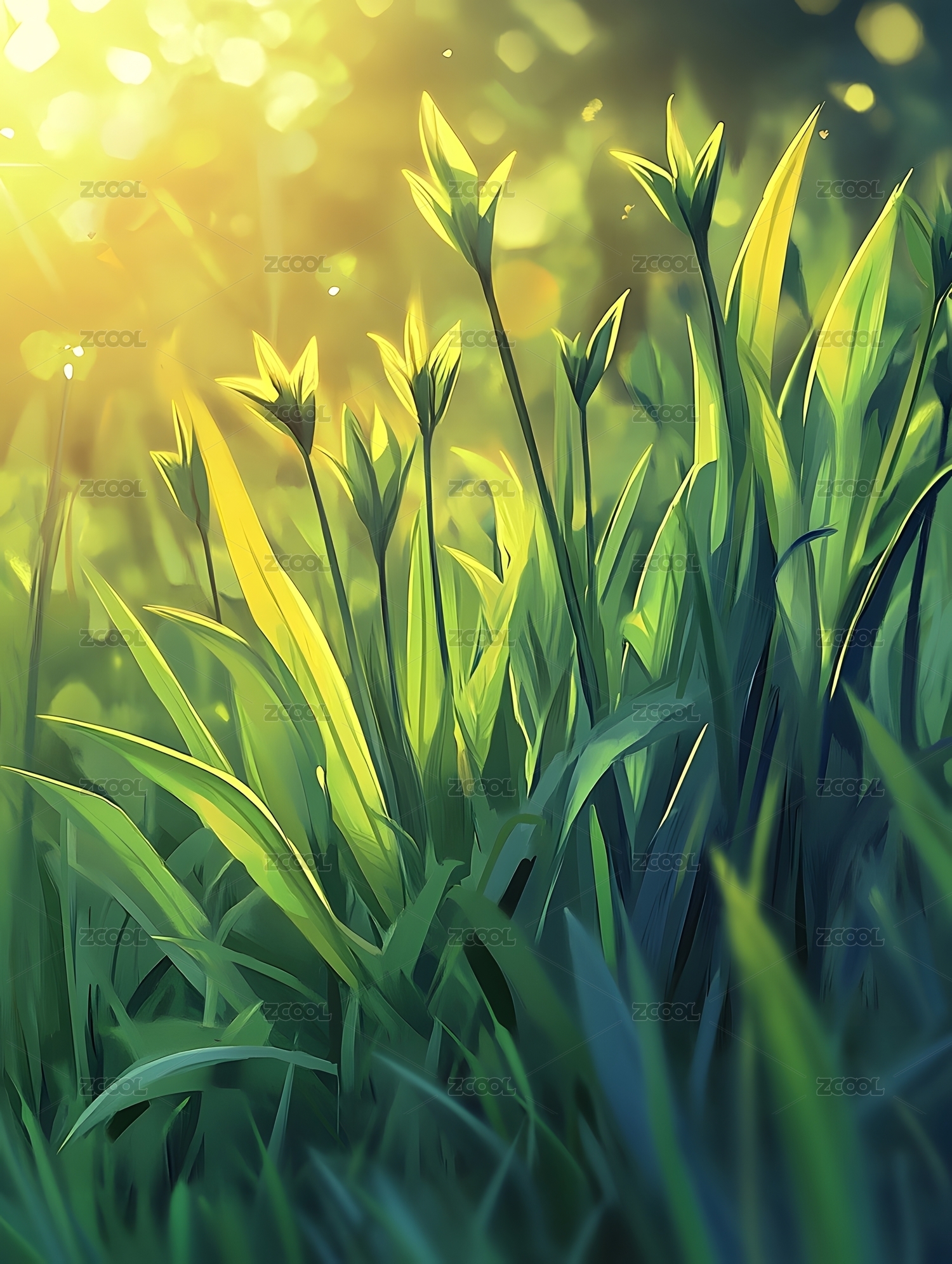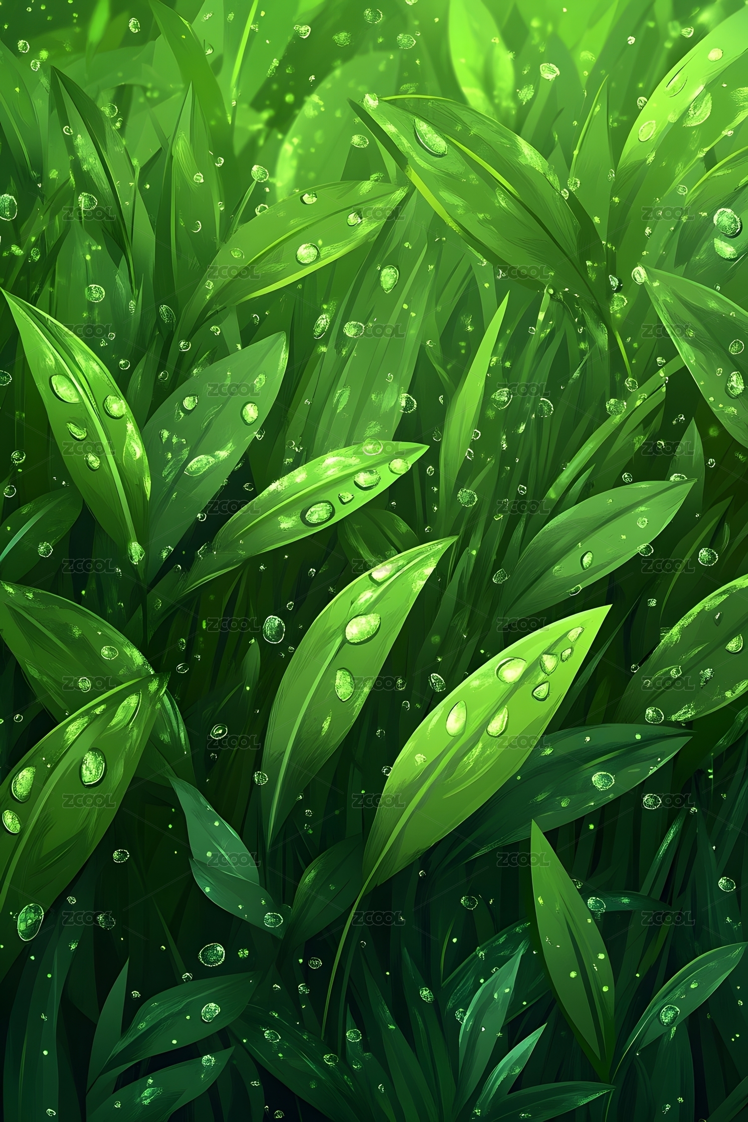 夏天治愈绿色嫩芽叶子上的露珠水珠