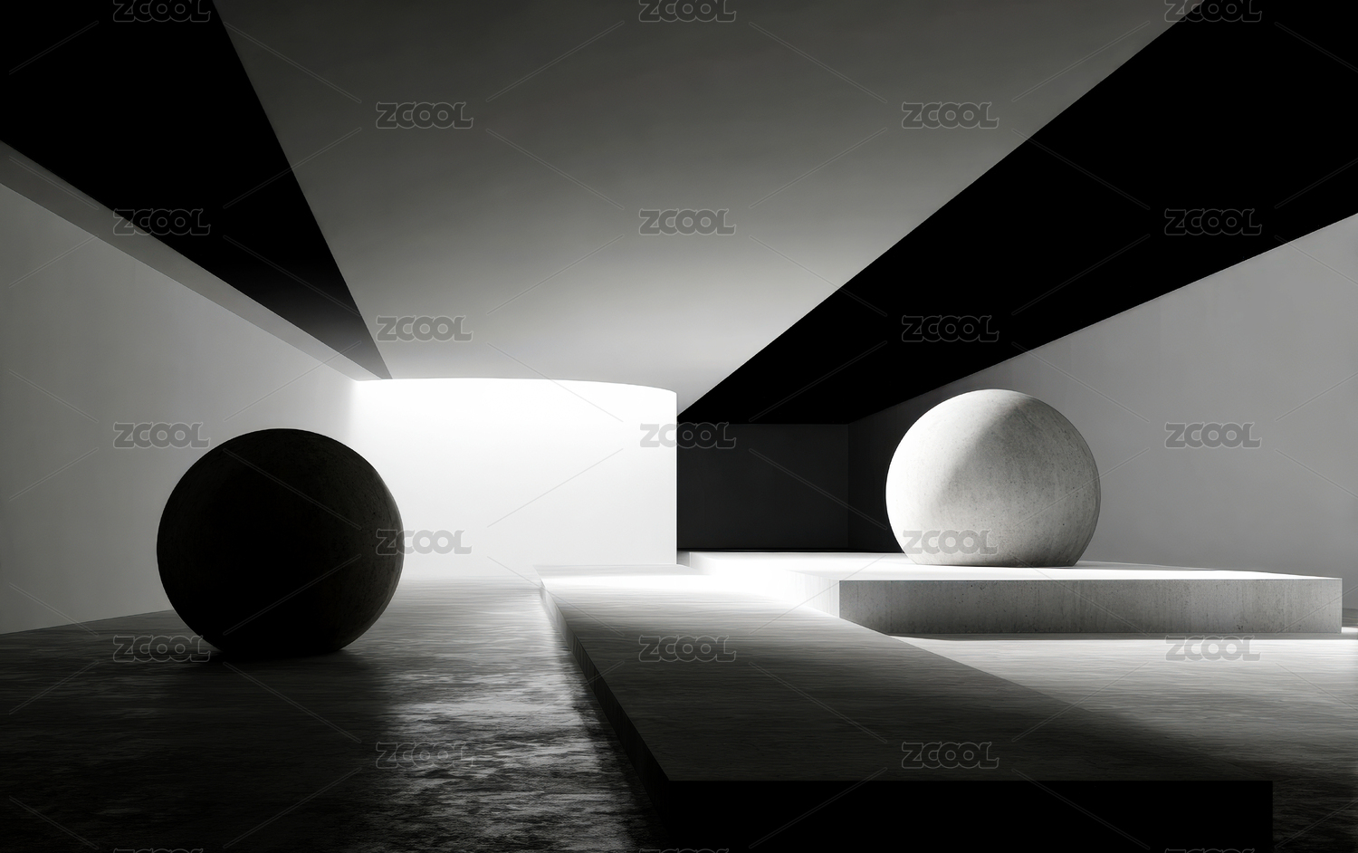 黑白抽象室内的球形物体