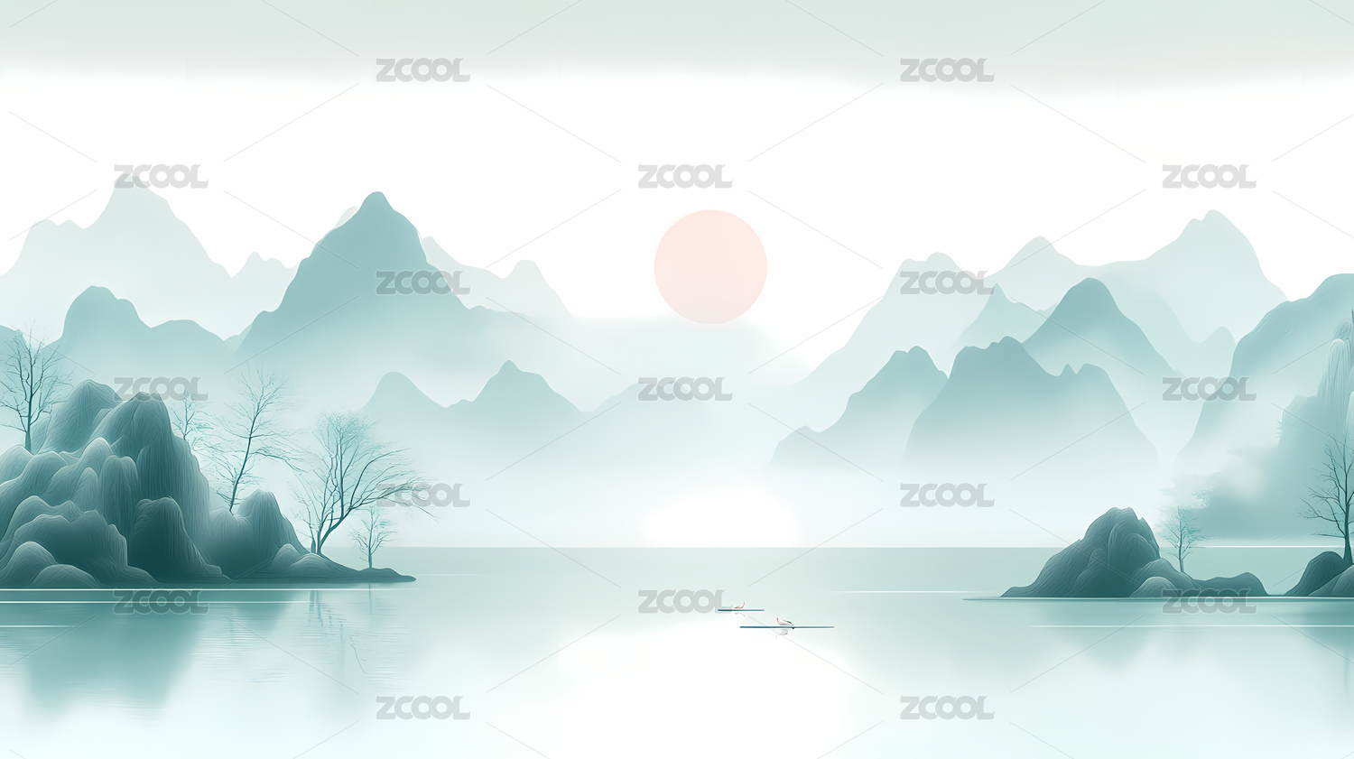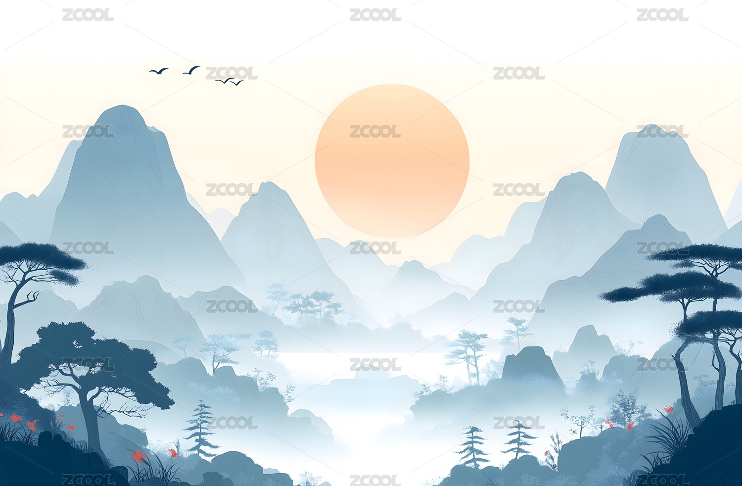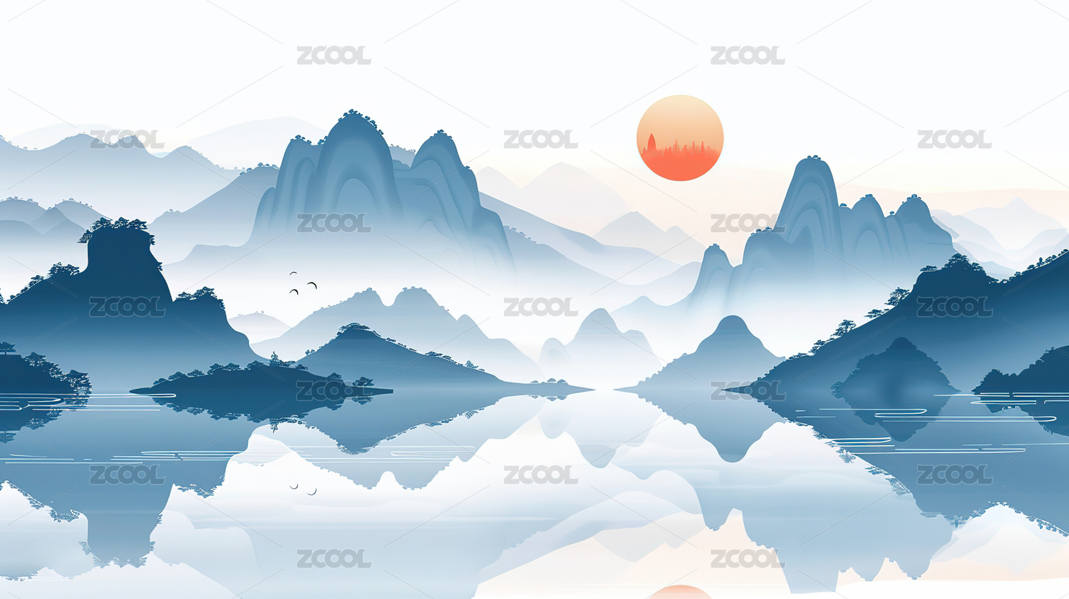 中国画,蓝色,插画,中国文化,自然,地形,新中式风格,背景,水墨画,高山
