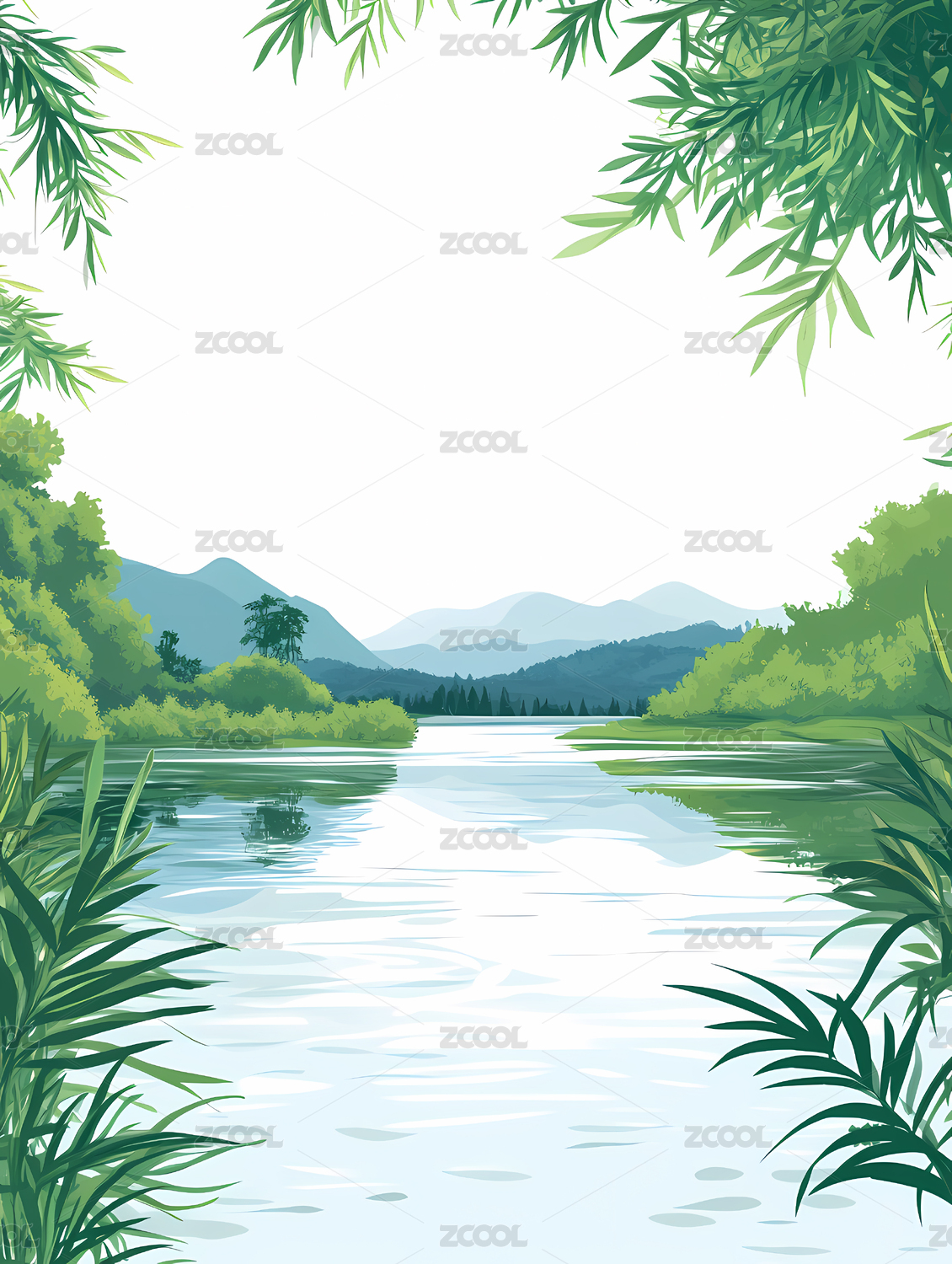 竹林溪流插画