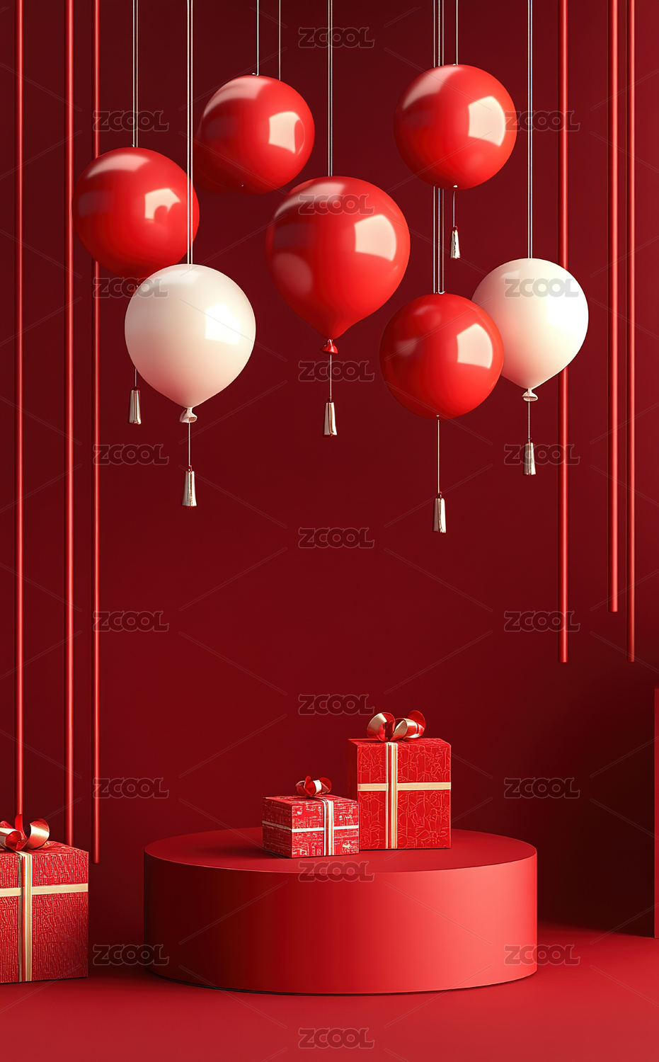 红色礼盒与气球的节日场景