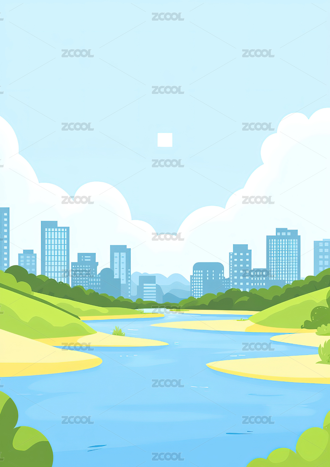 城市自然风景背景矢量插画