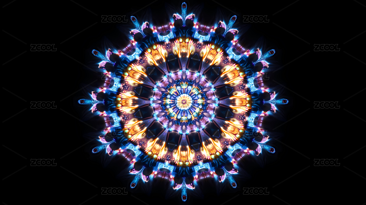 发光荧光的万花筒花瓣图案 对称空间纹理