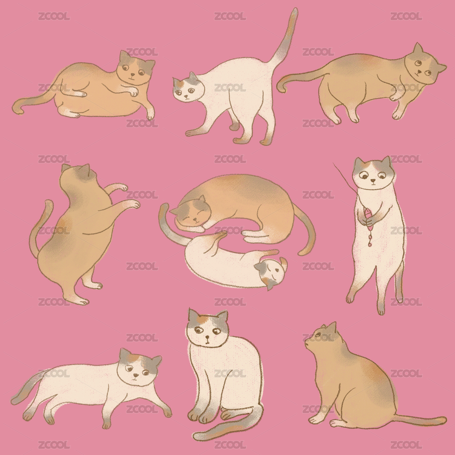 各种不同姿势的橙色猫插图,快乐的玩耍