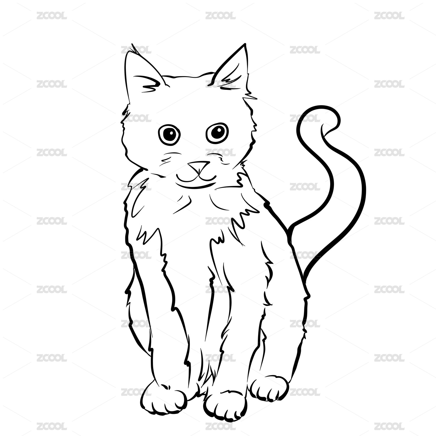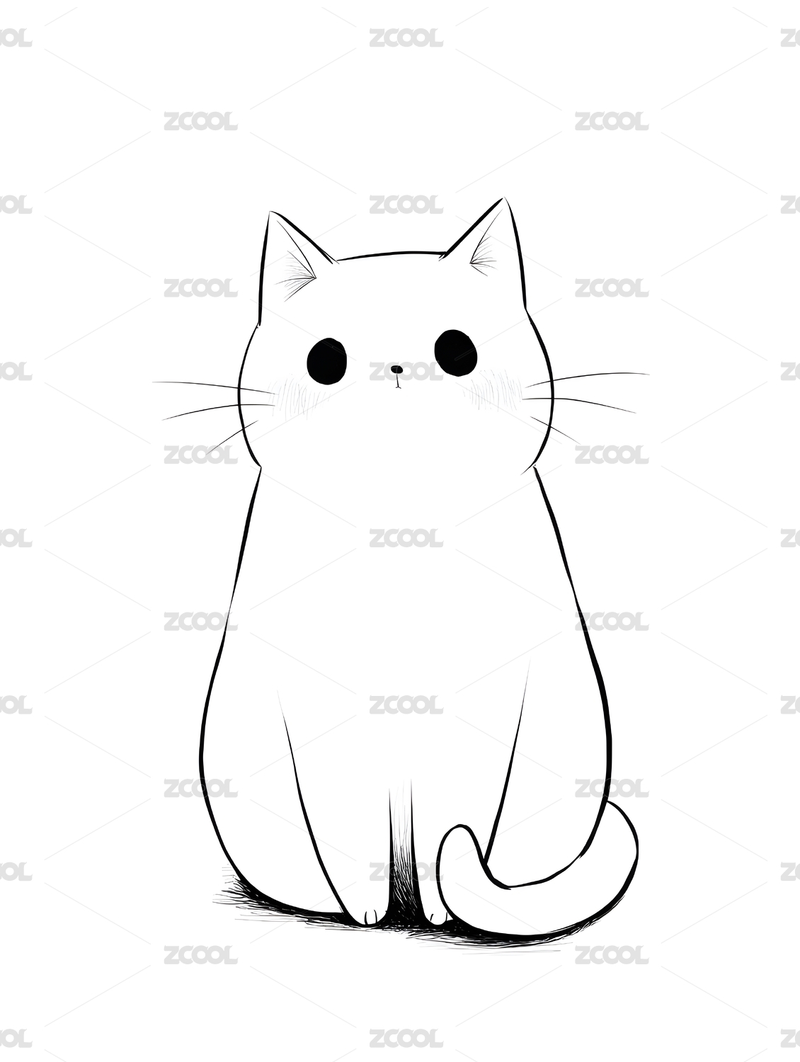 草图,线条艺术,动画片,黑与白,画画,猫,插画,线描,猫和狗,猫表情