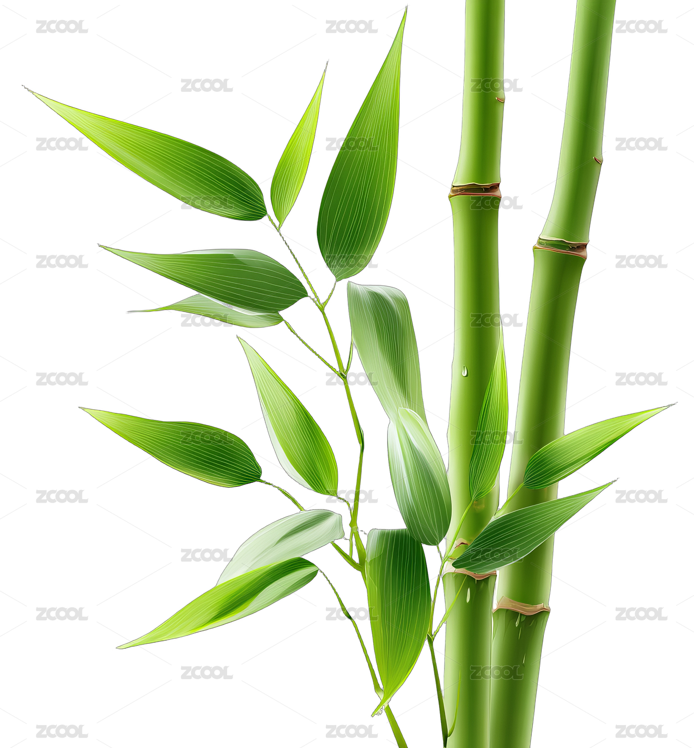 翠绿竹子与繁茂叶片