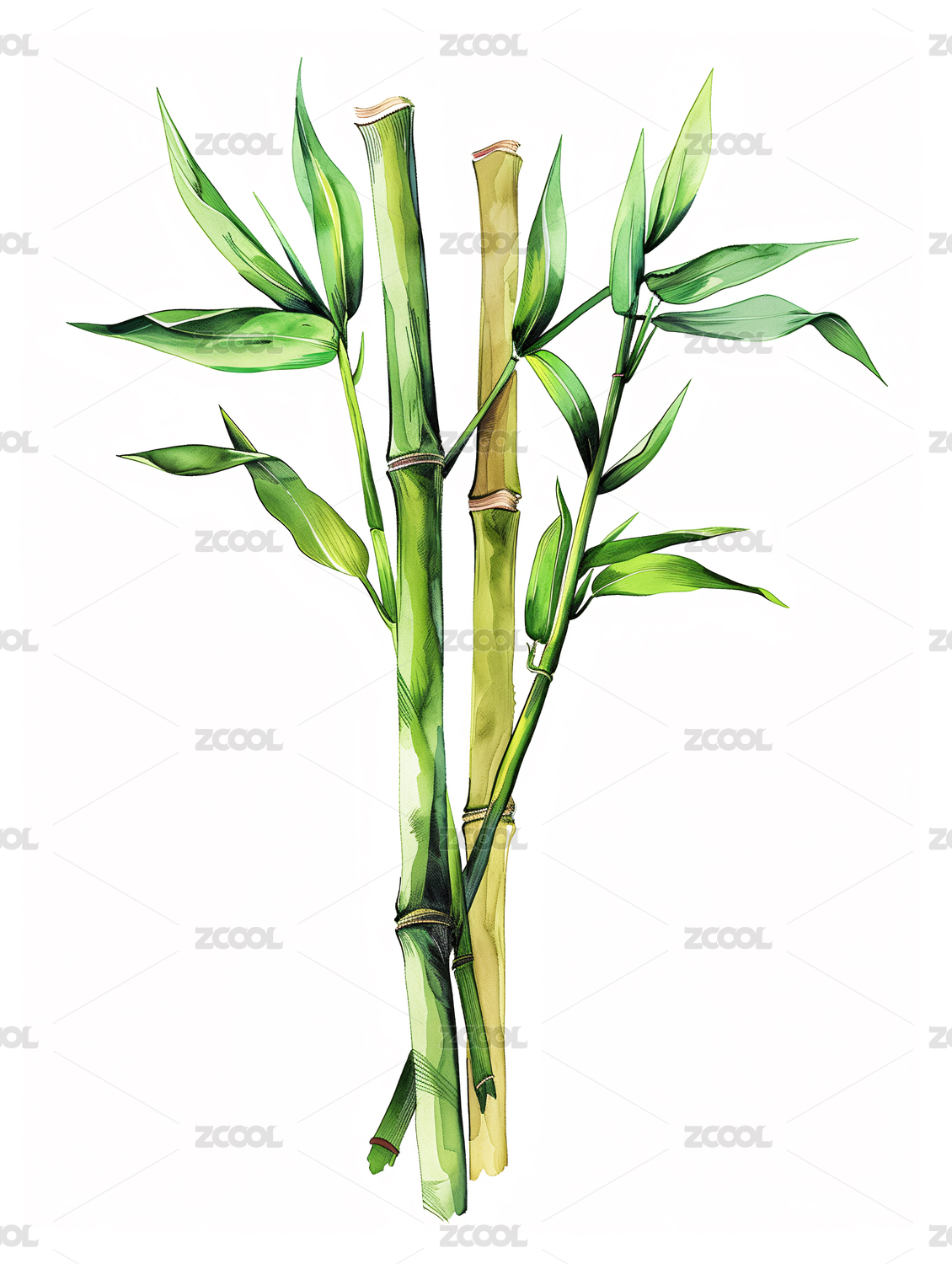 水彩竹子插画
