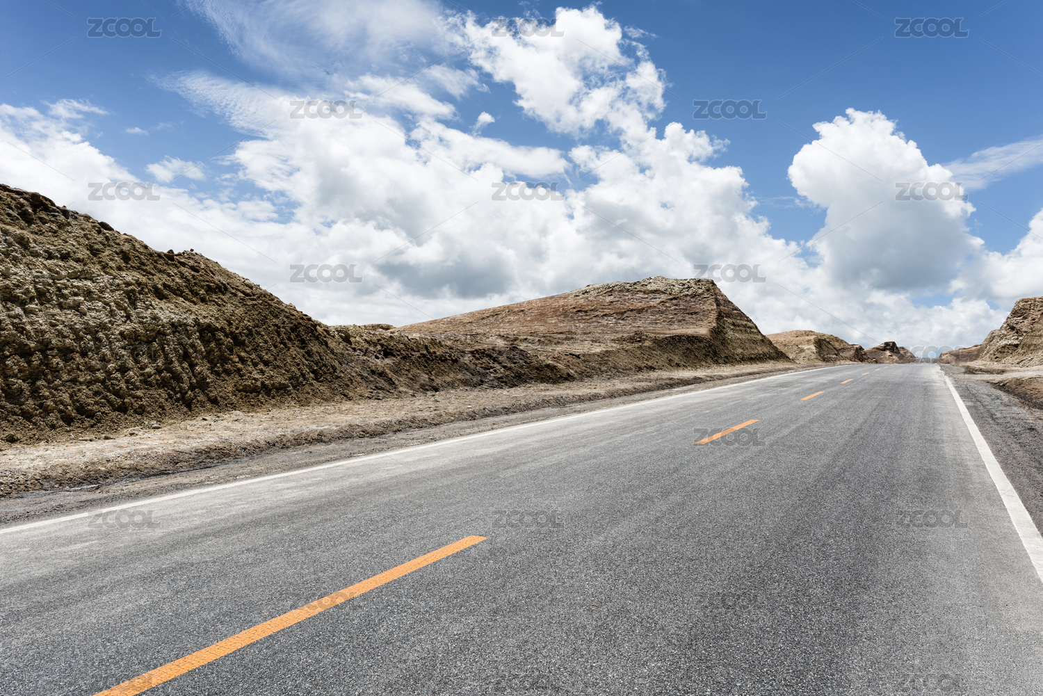 中国大西北云层下的笔直马路
