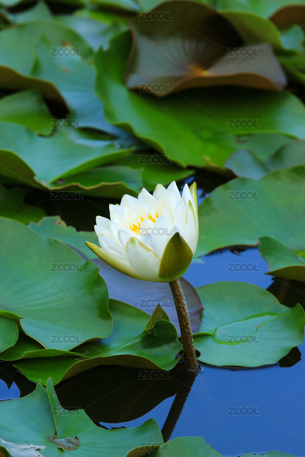 水中绽放的白色睡莲