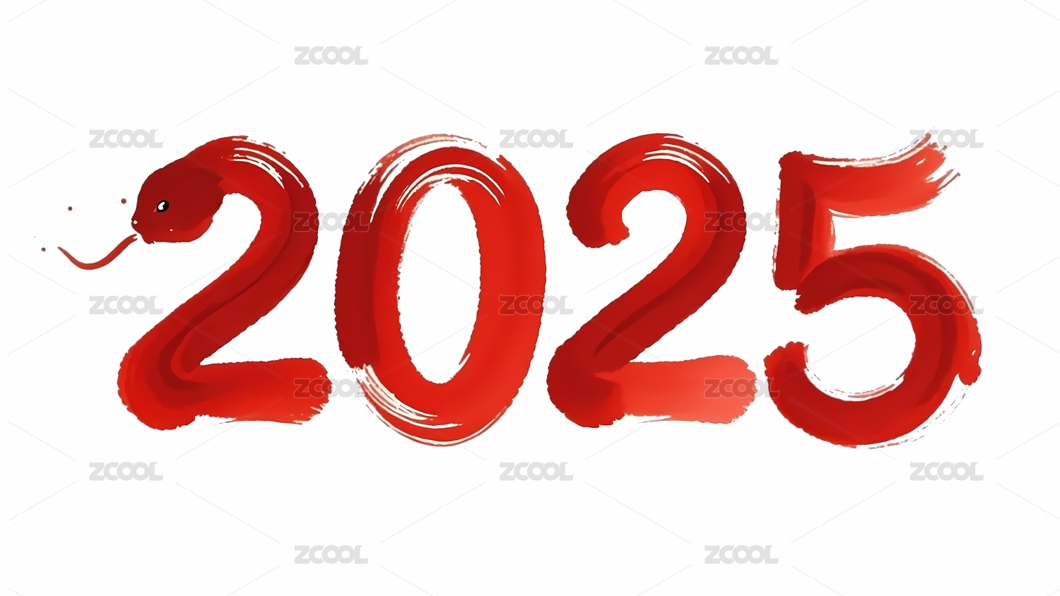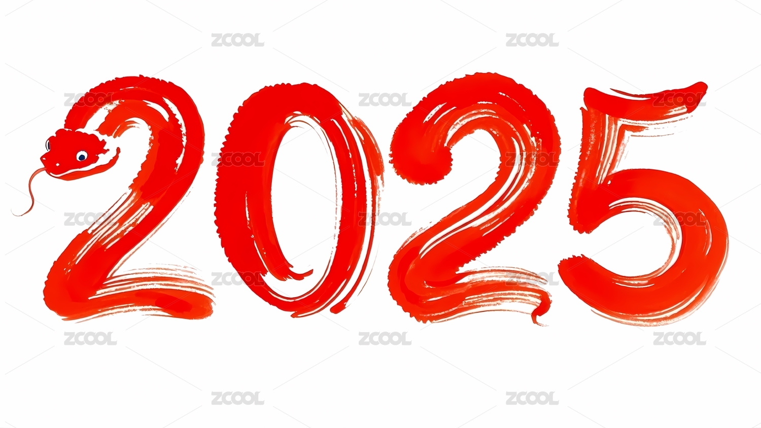 毛笔风格的蛇缠绕着数字2025