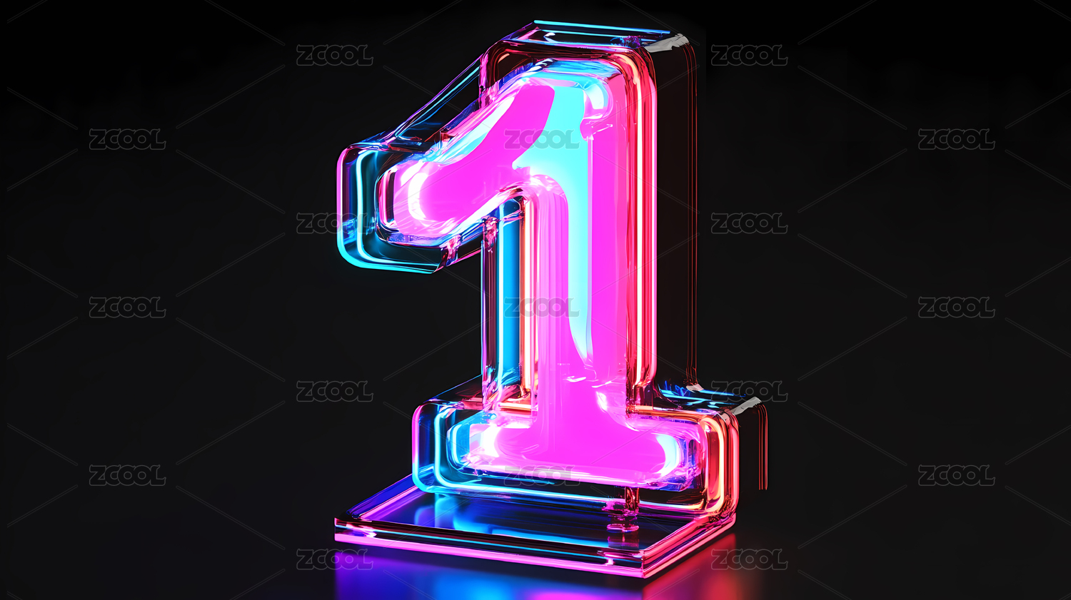 三维立体霓虹数字1