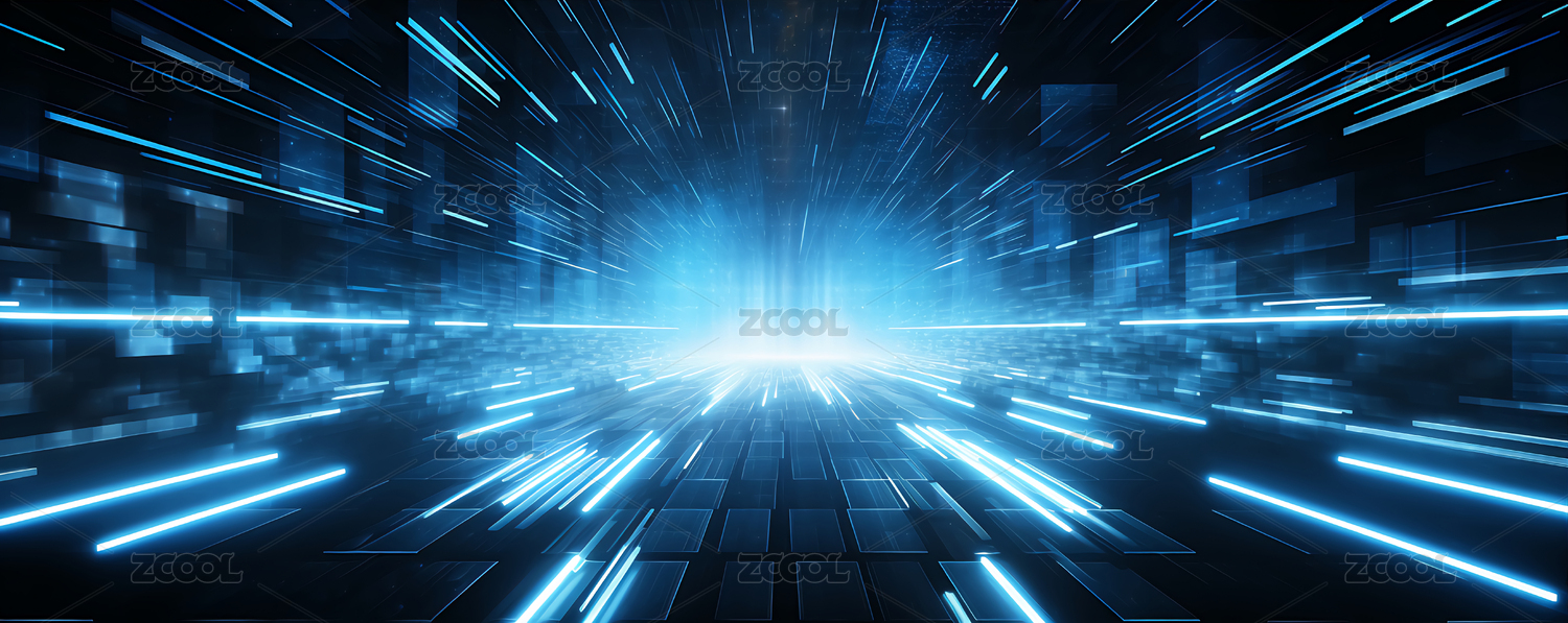 蓝色发光科技放射状虚拟空间背景