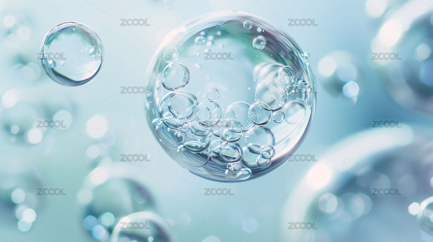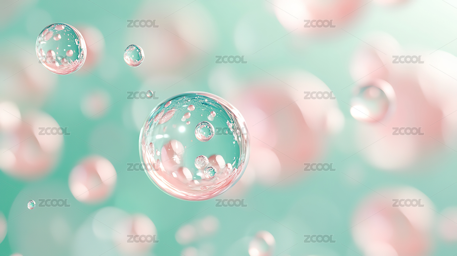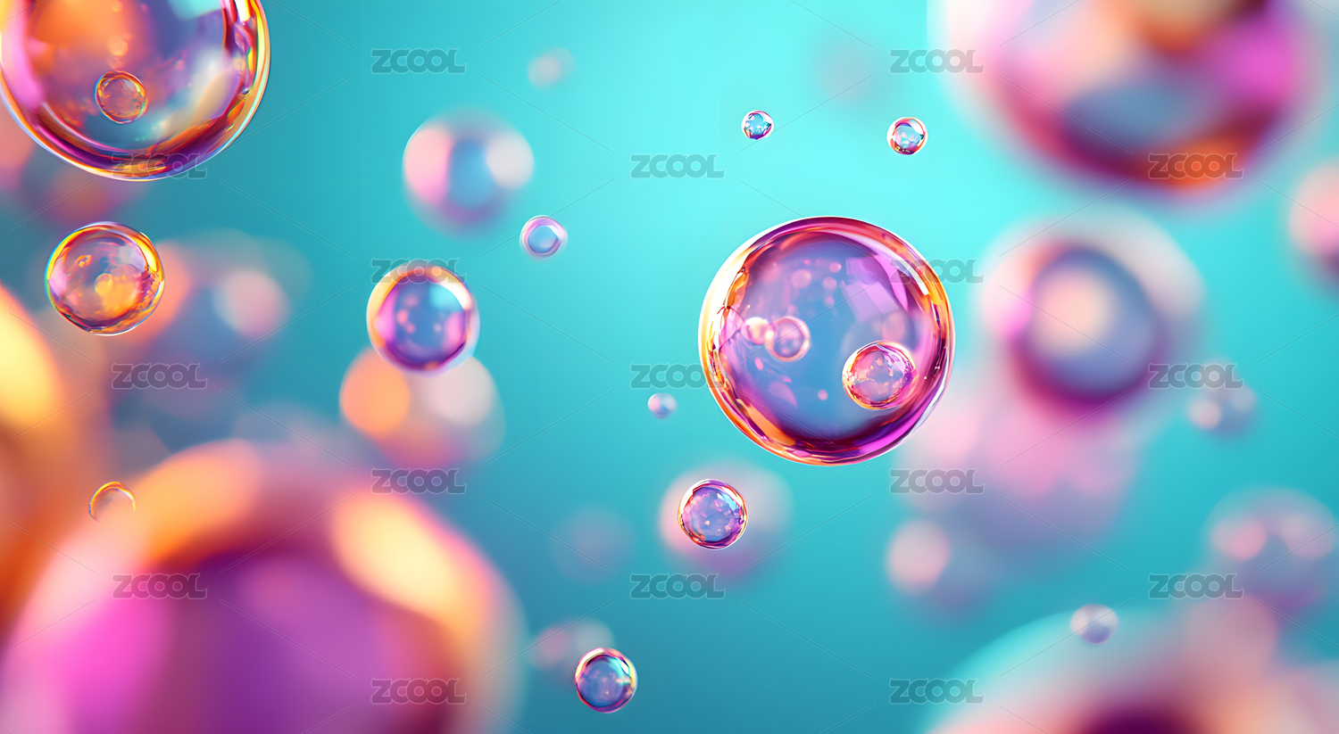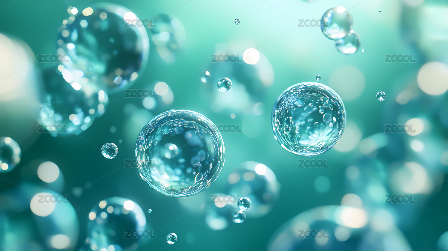 化妆品保湿水分子精华液体气泡背景3d渲染