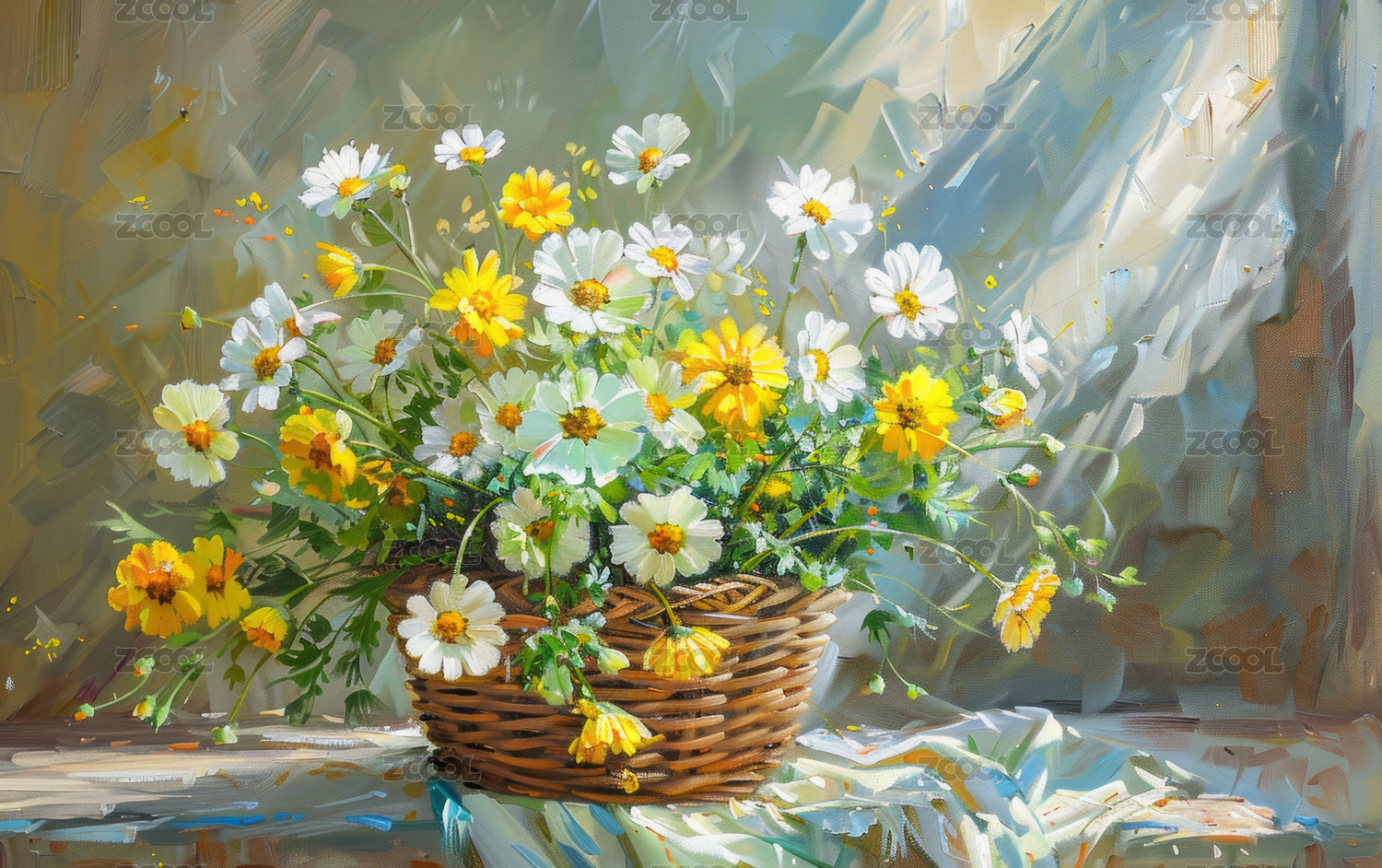 一幅小雏菊的艺术油画背景