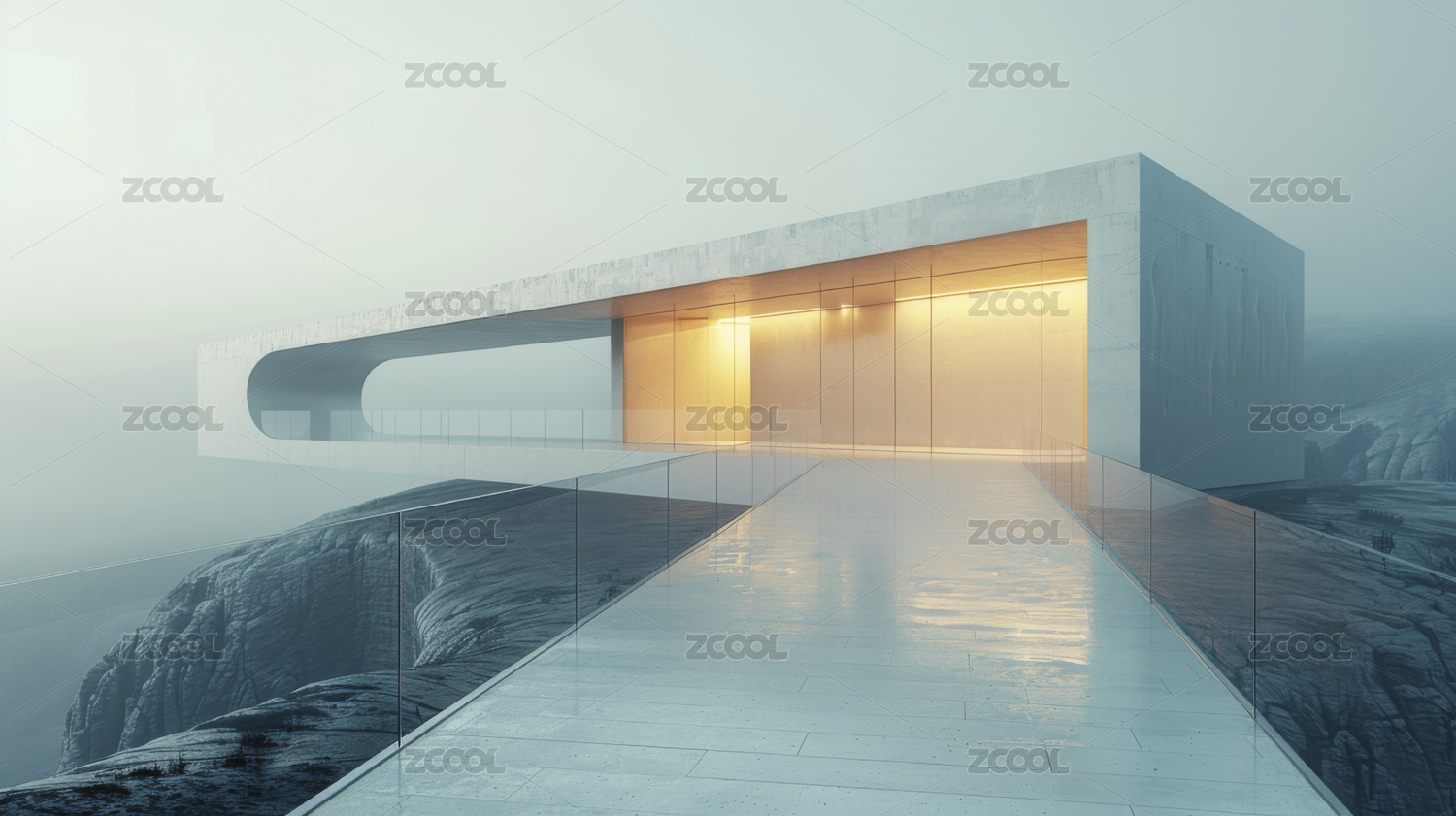 雾中现代极简建筑设计