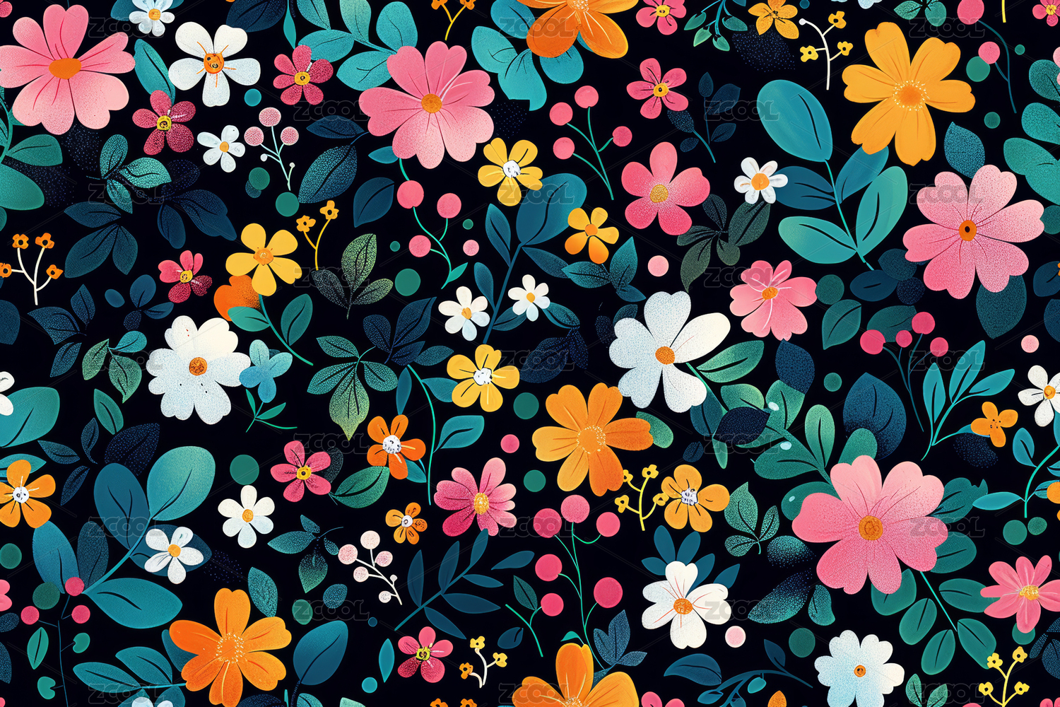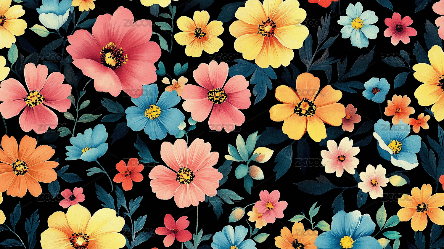 水彩花,大花,小花,碎花,黑底,水彩,印花,数码,花卉,花朵