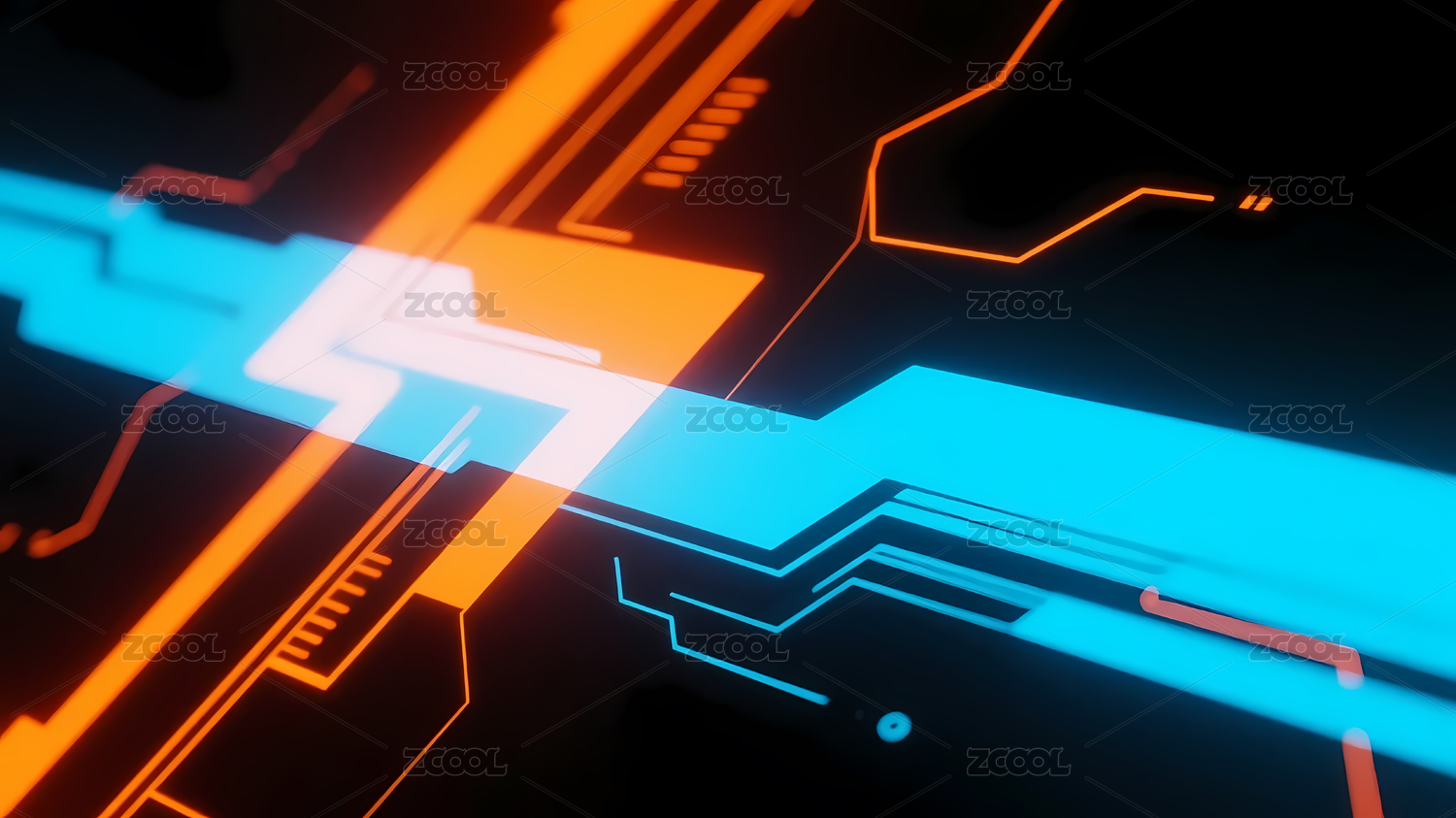 橙蓝电路线条交织