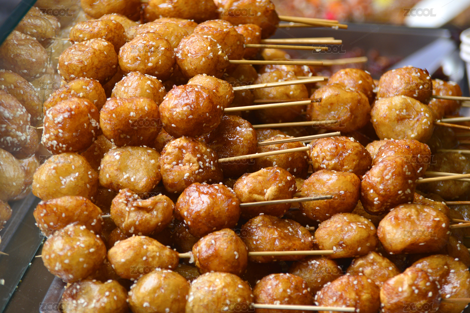 美食,食物,传统,小吃,成都小吃,油炸麻圆,芝麻,油炸,竹签,麻园