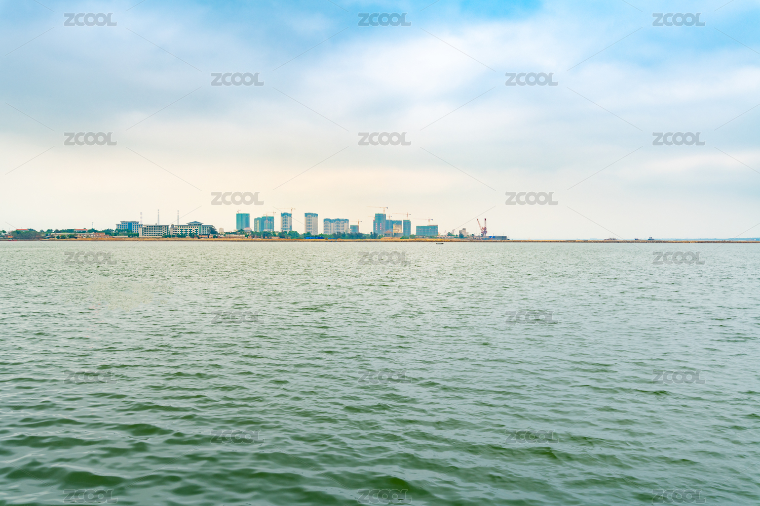 滴水湖,航拍,上海,浦东新区,人工湖,湖泊,美丽,旅游,蓝天,白云