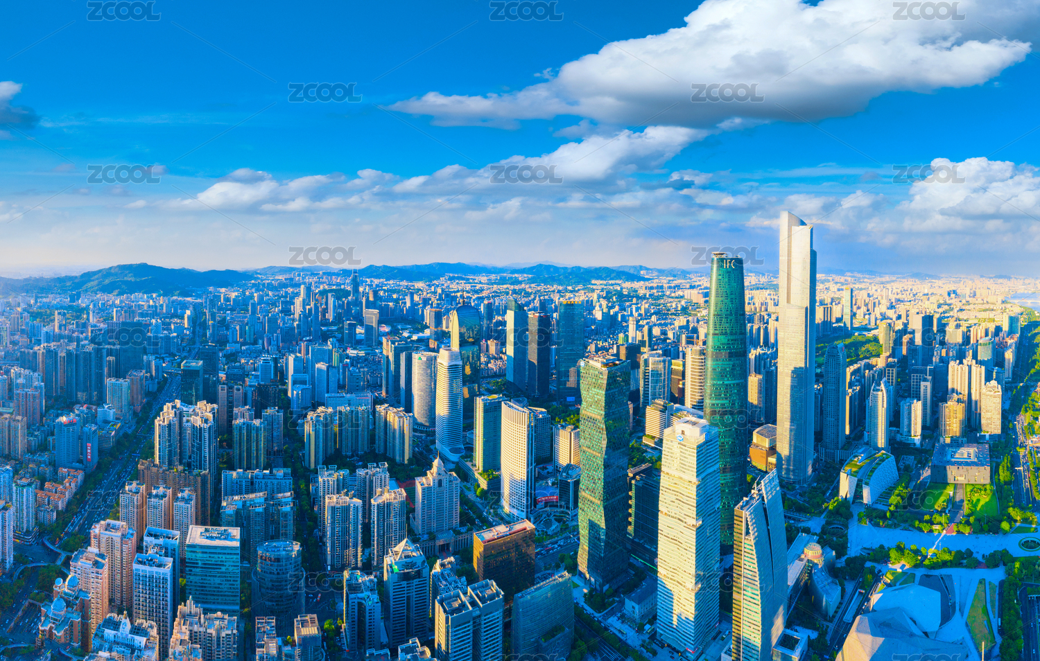 航拍视角鸟瞰广东省广州珠江新城CBD城市