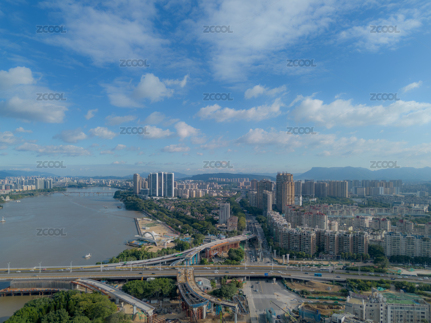 福州闽江西段南岸城市建筑和金山大桥