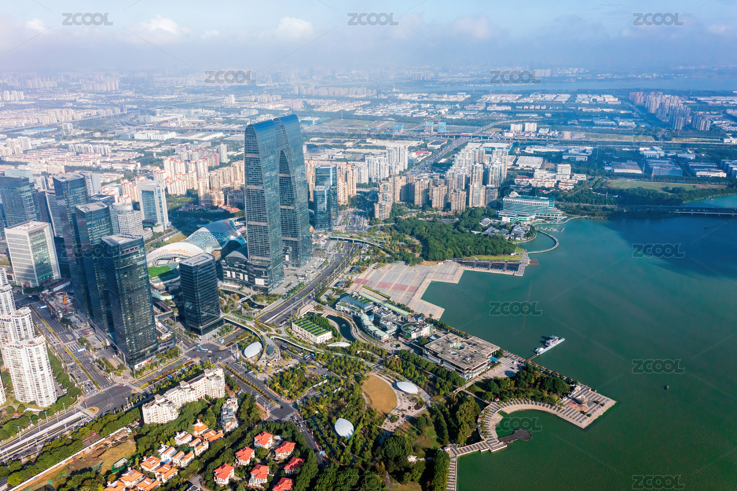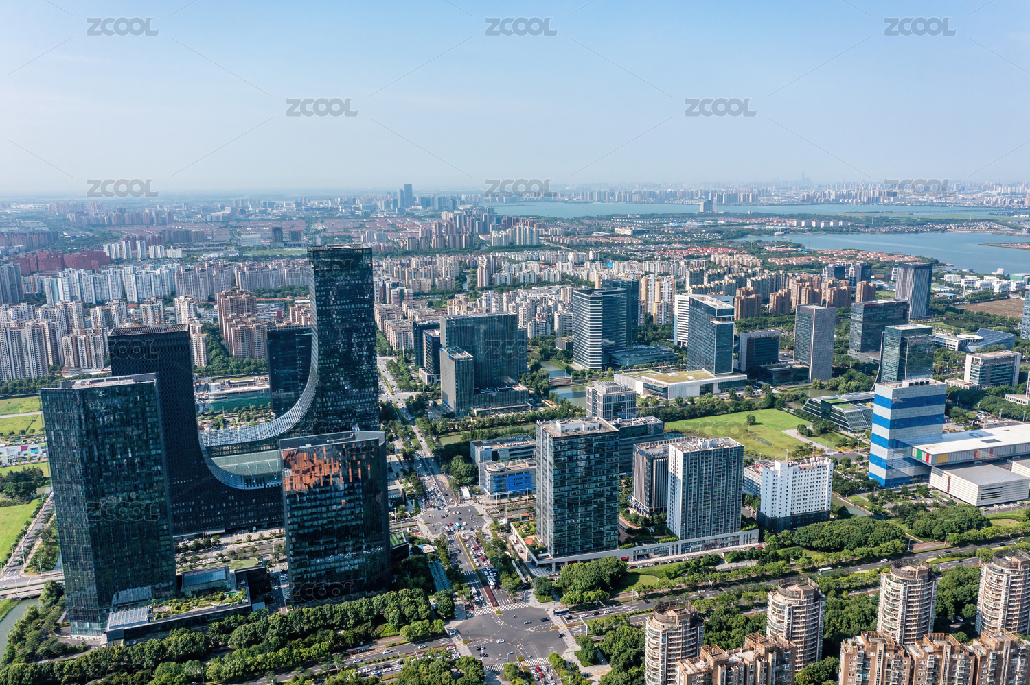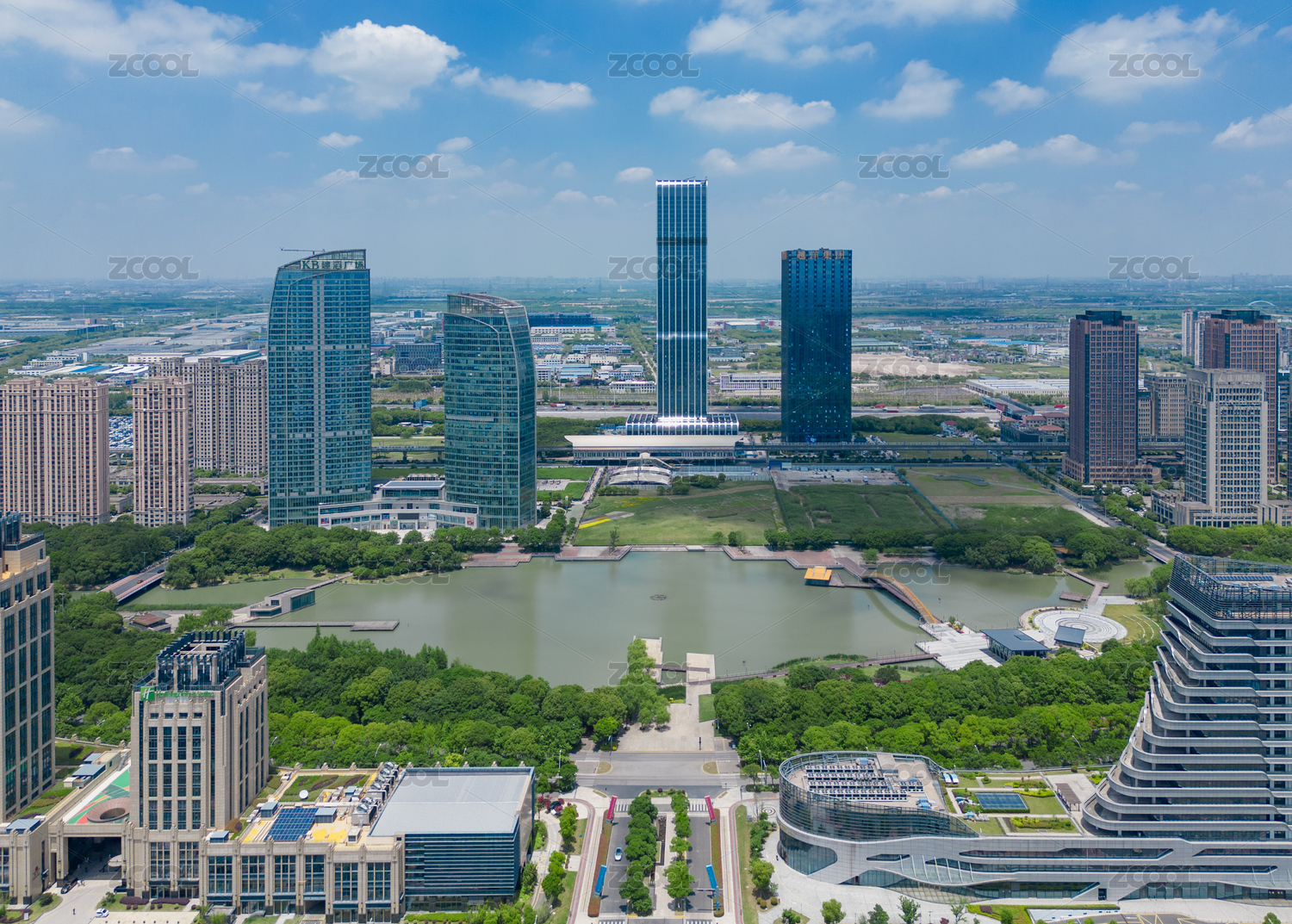 中国江苏苏州金鸡湖CBD城市航拍风光