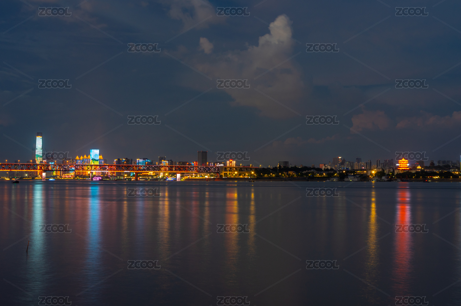 湖南长沙湘江橘子洲大桥夜景长曝光