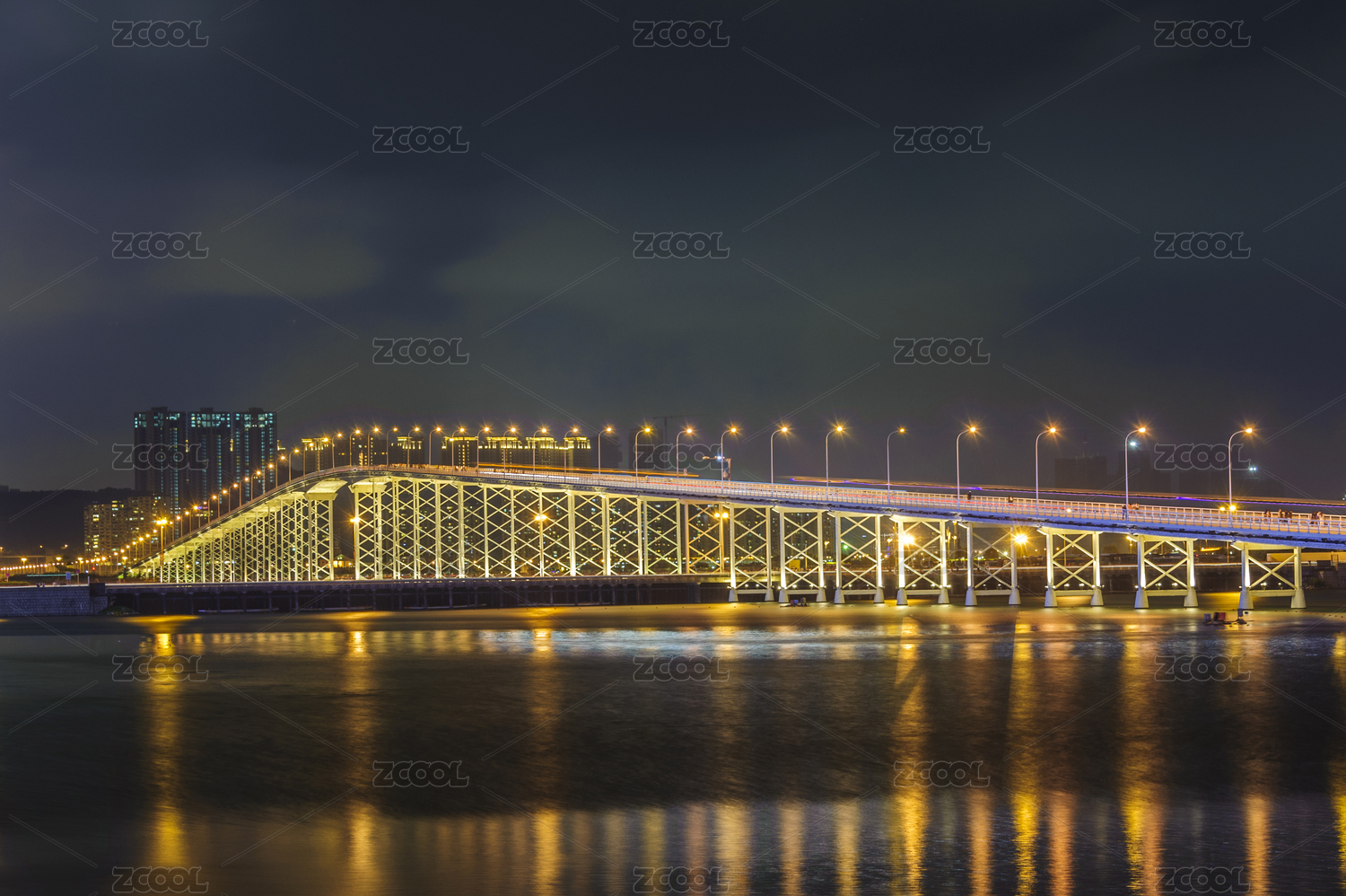 星海湾大桥,星海广场,夜景,灯光秀,大连,著名景点,水,天空,反射,黄昏