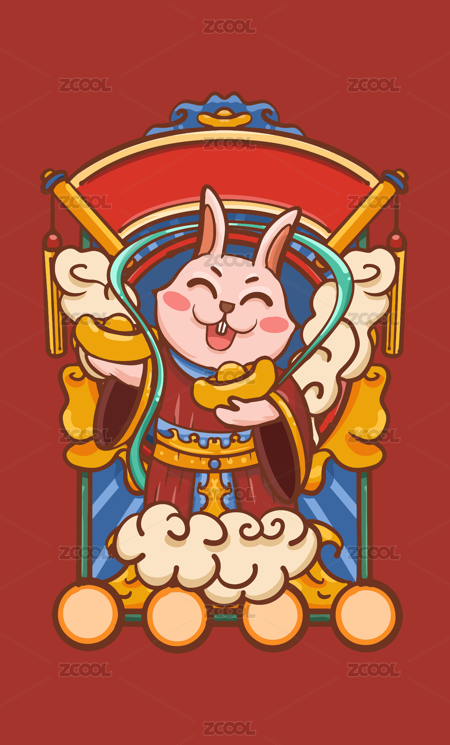 插画,插图,矢量插画,国潮插画,兔子,兔年,生肖,莲花,荷花,花朵