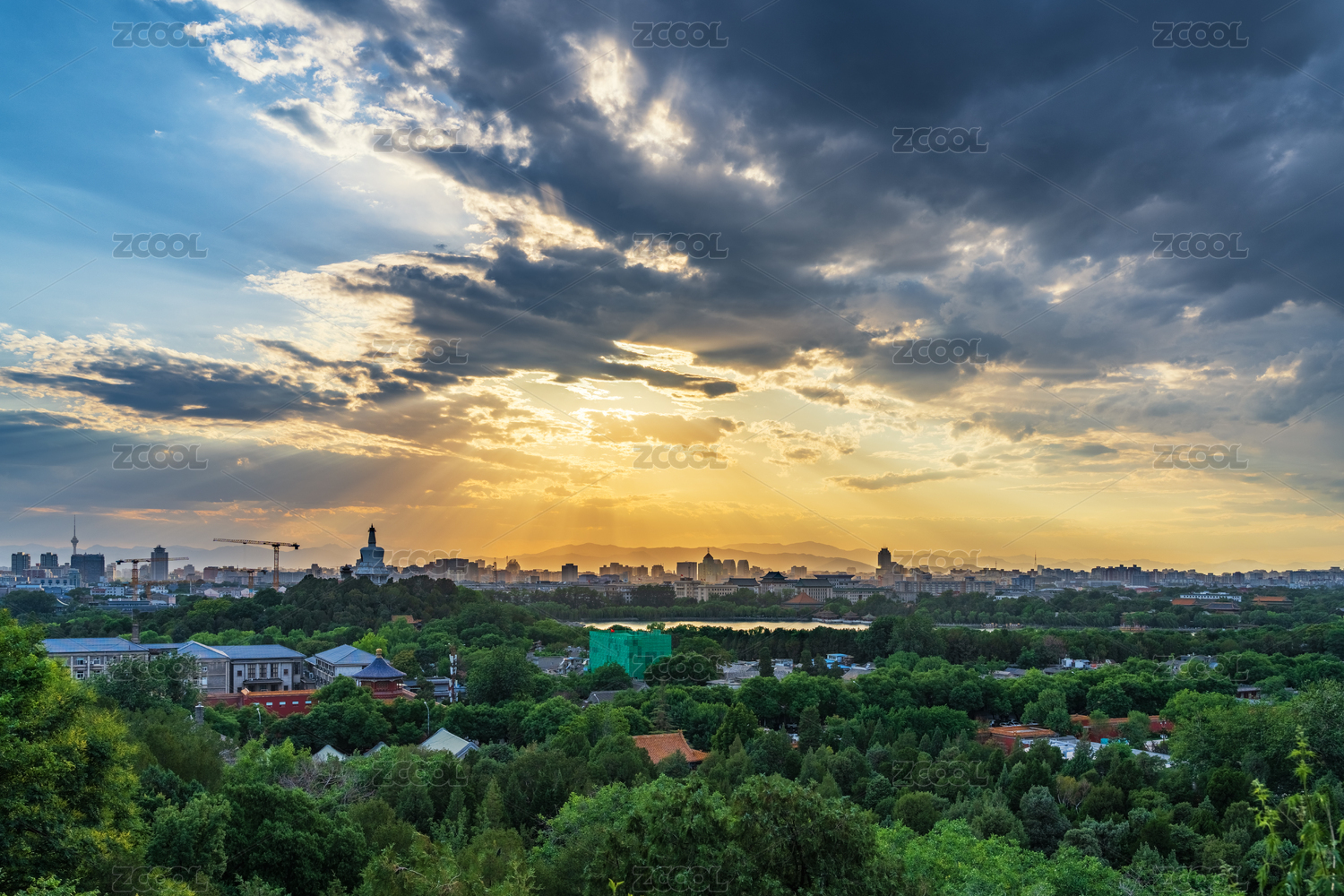 从景山公园万春亭俯瞰寿皇殿及北京城
