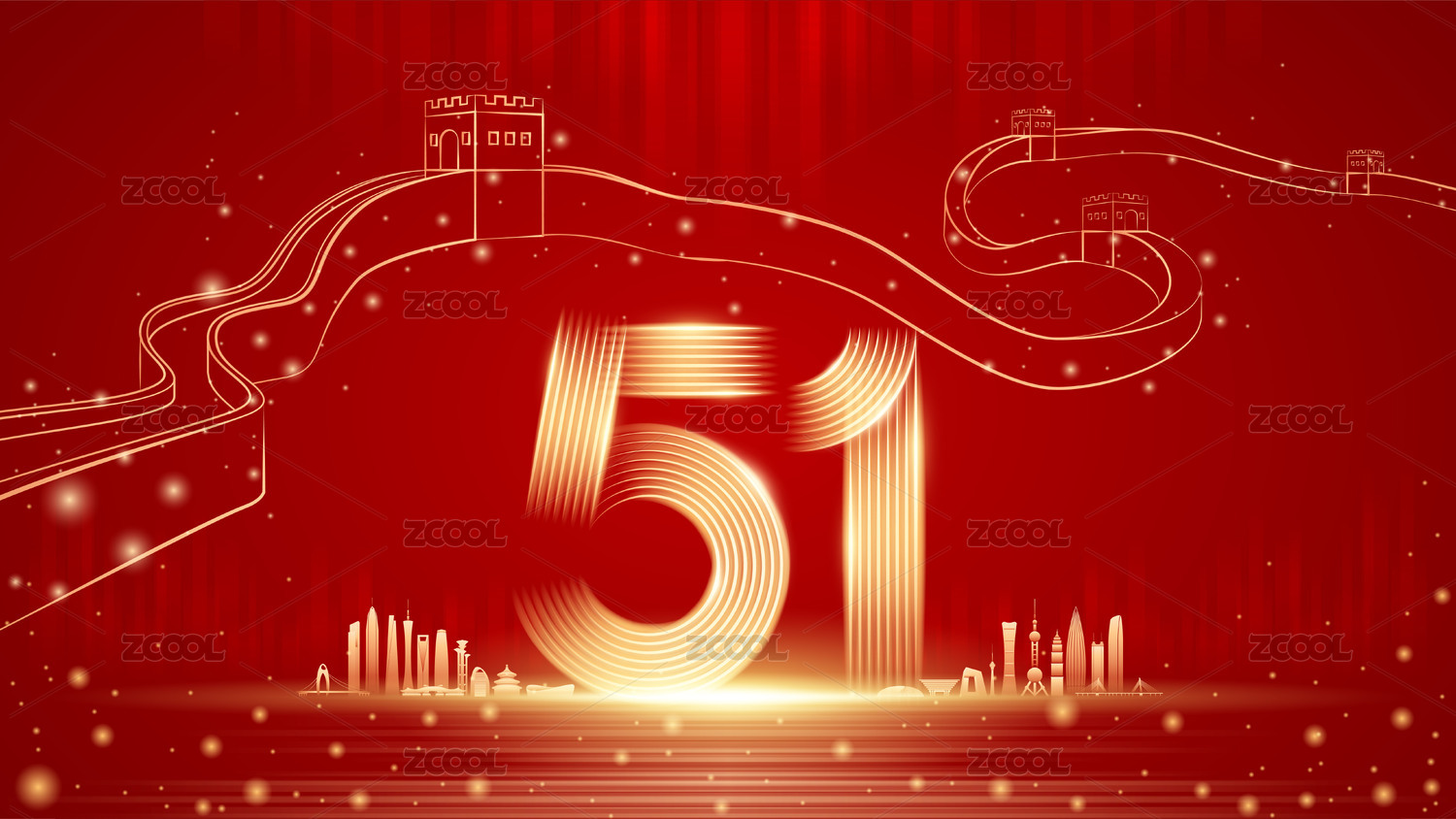 粒子,背景,曲线,插画,矢量,数字,红绸,劳动节,五一,51