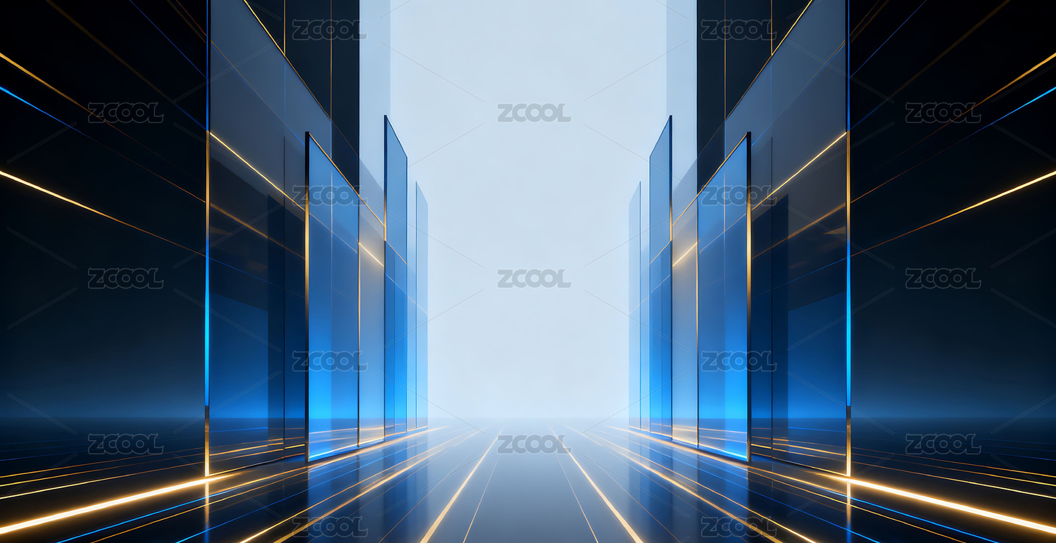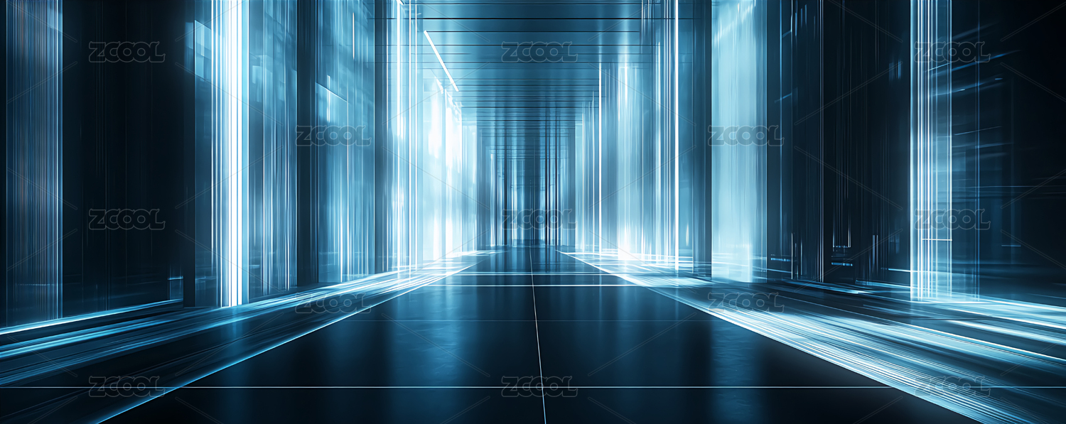 蓝色光线构成的未来科技走廊