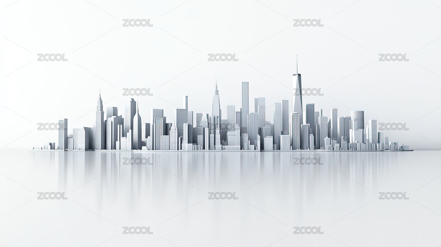 城市,城市天际线,抽象,插画,白色背景,倒影