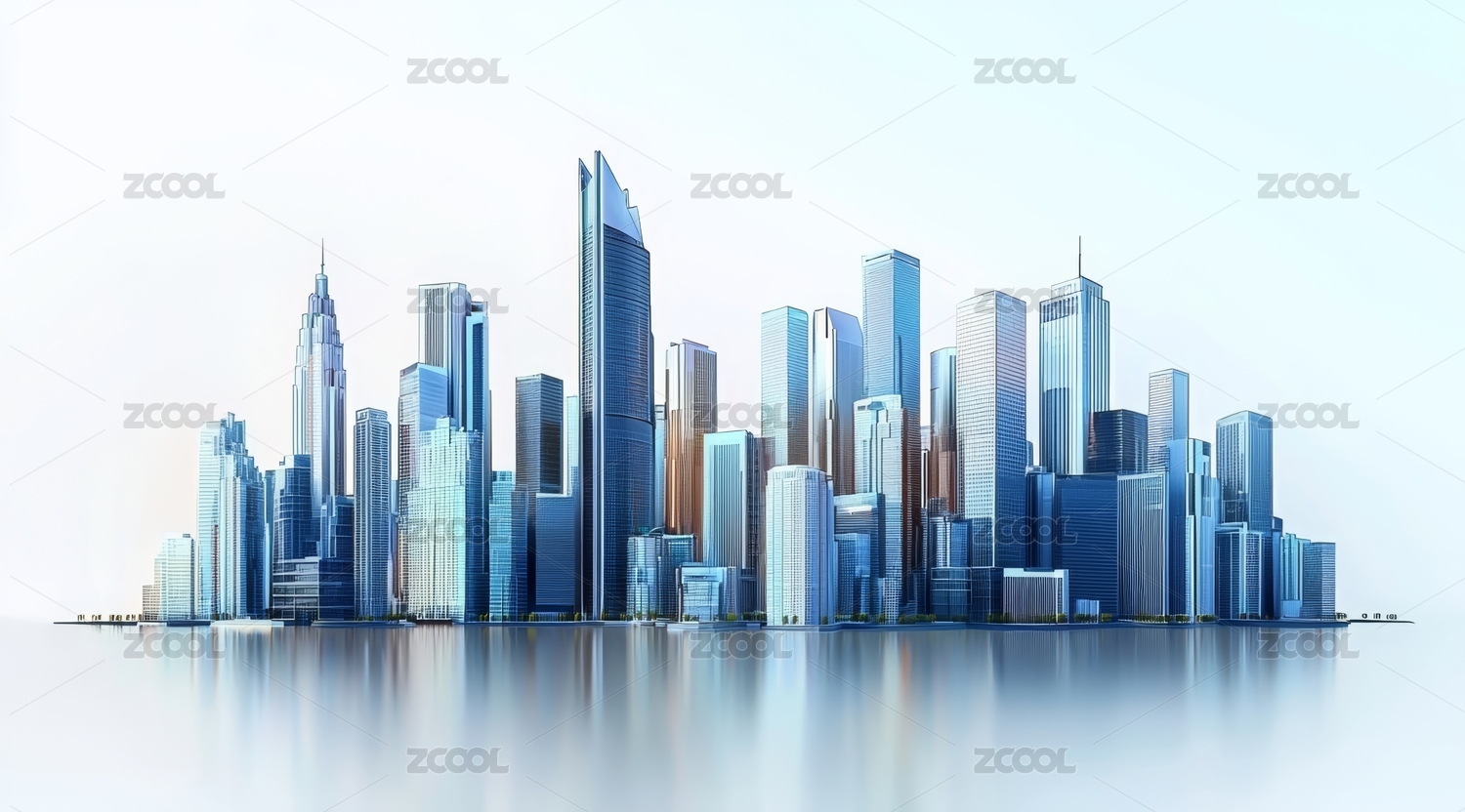现代城市天际线倒影